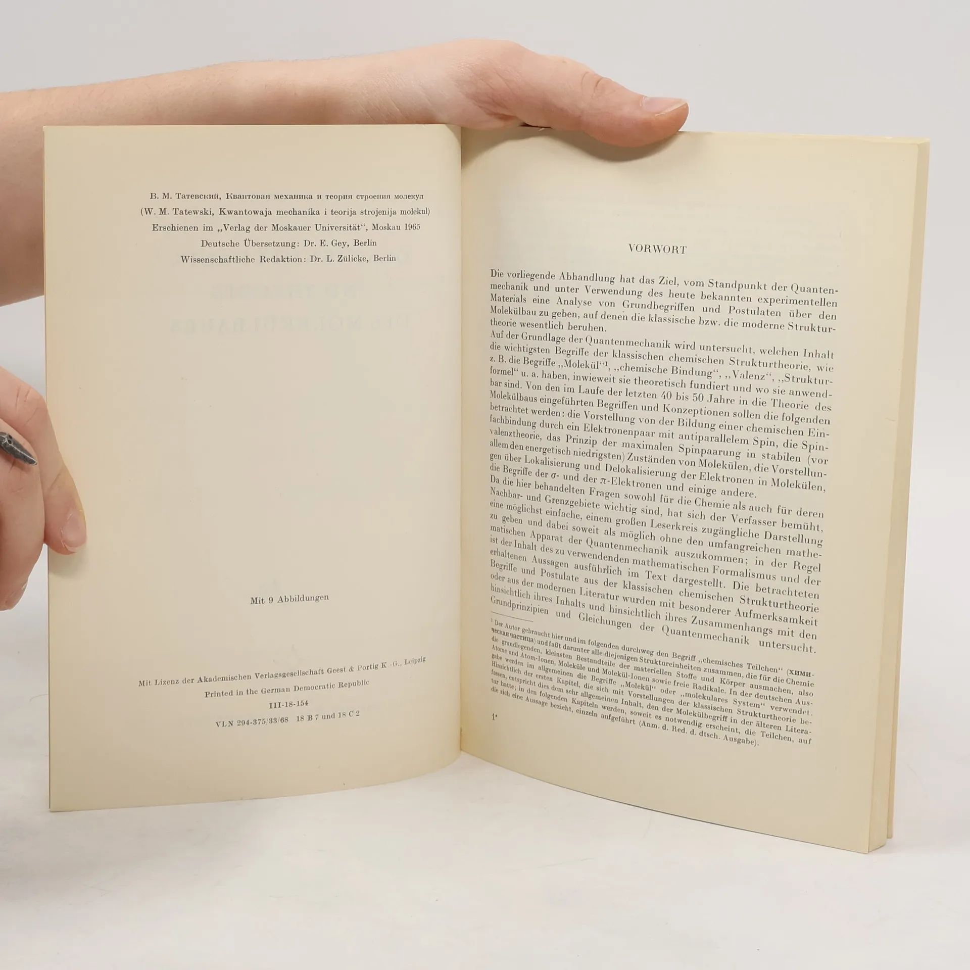 Quantenmechanik und Theorie des Molekülbaues., Vladimir Mikhaĭlovich Tatevskiĭ
