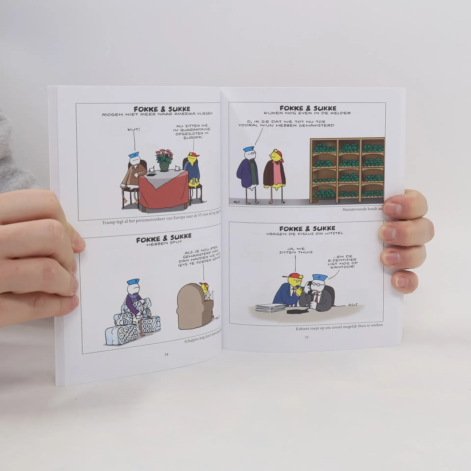 Het afzien van...', de jaarlijkse bundeling van actuele cartoons van Fokke & Sukke, staat deze editie in het teken van corona.0De beste grappen uit 'NRC Handelsblad', 'NRC Next', 'Rendement' en andere uitgaven waarin de populaire cartoons het afgelopen jaar verschenen.02020, een viraal jaar, een boek dat gesloten mag worden!