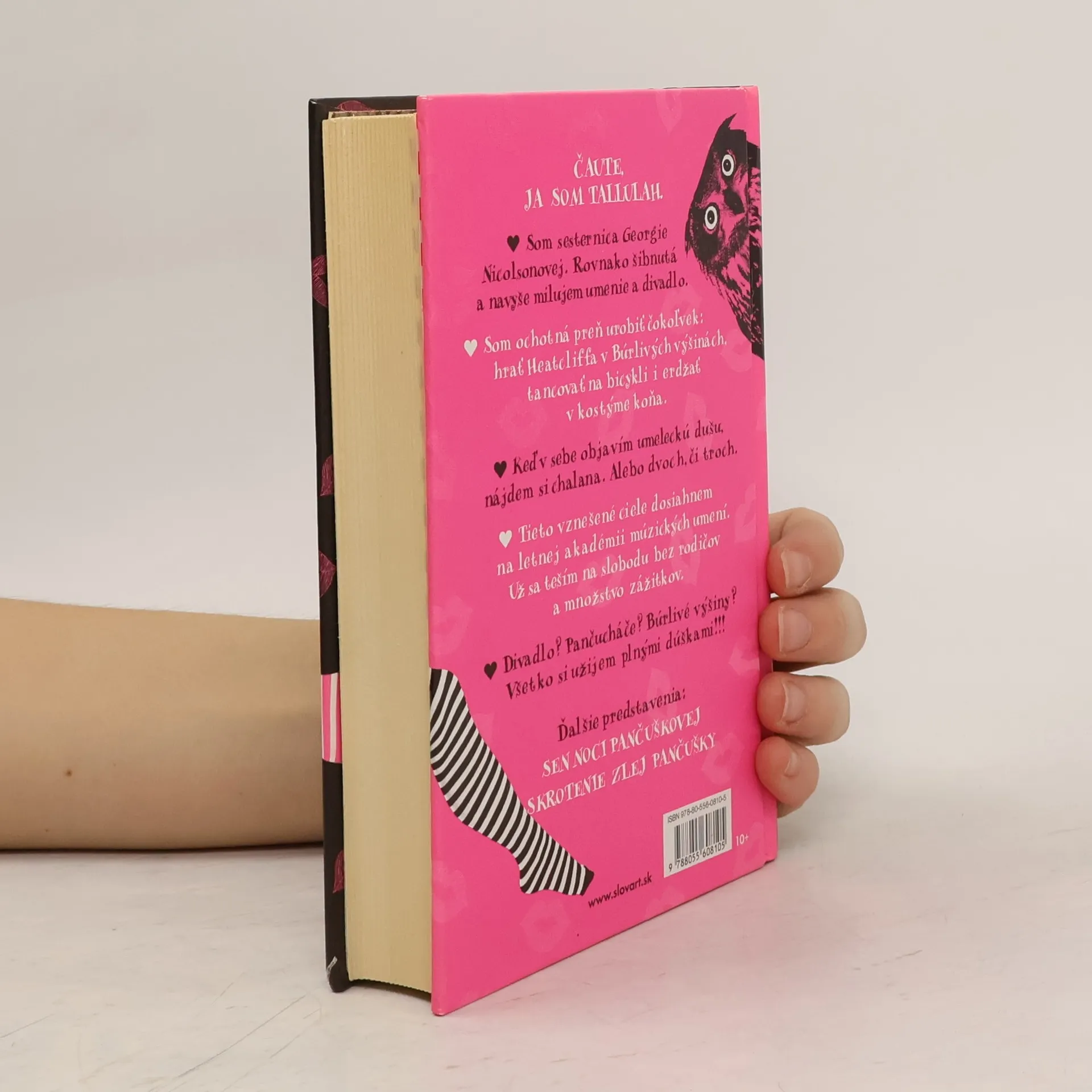 Vau! A je to tu. Toto je moja maličkosť na ceste k dospelosti. Celkom sama idem do Akadémie dramatických umení. Zbohom, Tallulah, ty skaderuka-skadenoha. Nech žije Lullah, hviezda dosiek, čo znamenajú svet! Tallulah Caseyová je pripravená objaviť v sebe umeleckú dušu a nájsť si zopár nových kamarátok. Ba možno aj chlapca, prípadne dvoch či troch. Ako dosiahne tieto vznešené ciele? No predsa ako študentka letnej Akadémie dramatických umení. A tak cestuje do divokých končín Yorkshire Dales, ktoré sú až neuveriteľne podobné vetrom ošľahaným vresoviskám z Búrlivých výšin. Tallulah sa teší na nové kamarátky, na slobodný život bez rodičov a množstvo umeleckých zážitkov. Divadlo? Pančucháče? Vresoviská? Všetko naberá plnými dúškami! Má to však háčik. Počas dlho očakávaného prvého bozku má zrazu pocit, akoby jej do úst vtrhol kŕdeľ malých netopierov.