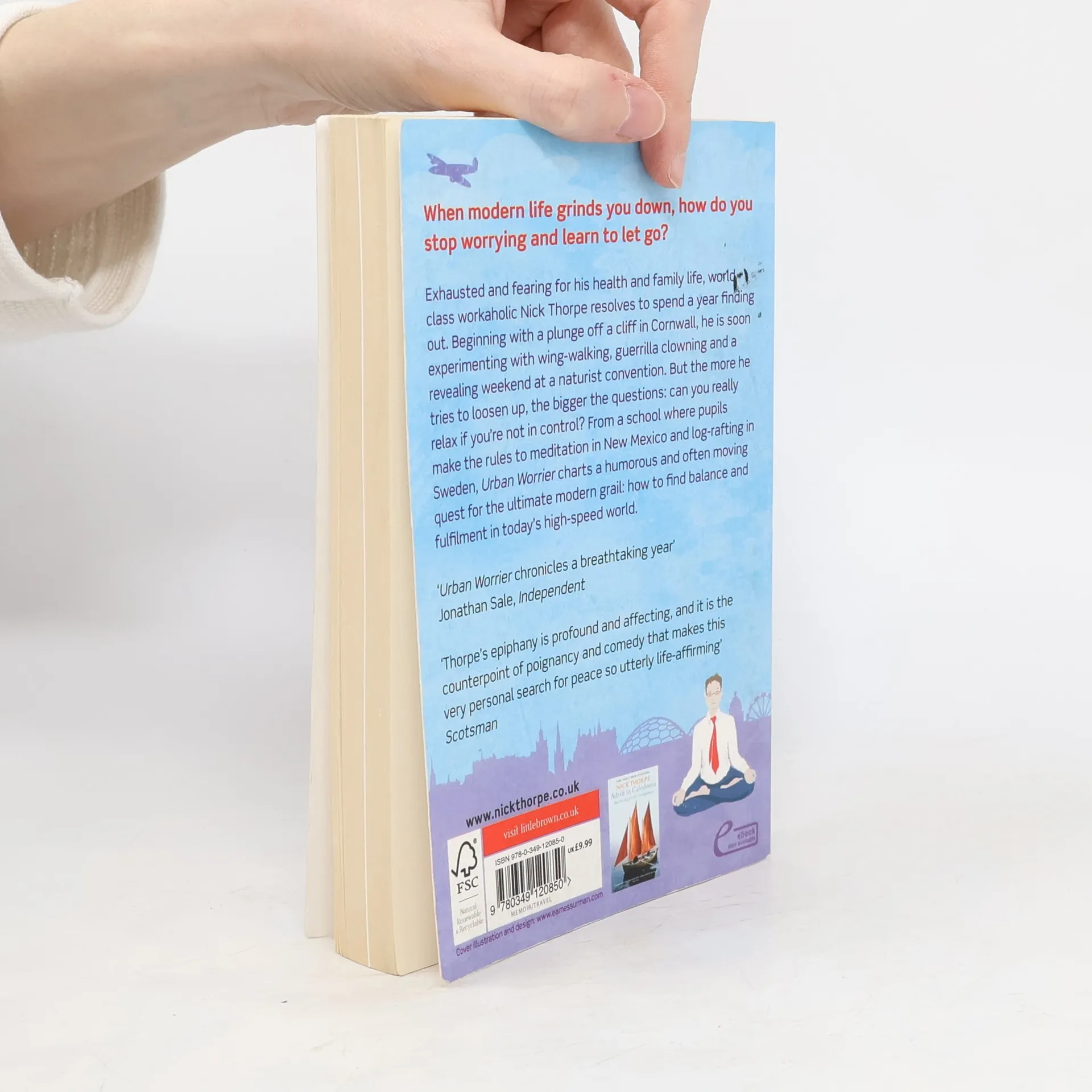 Hunched exhausted at his computer one ordinary Monday morning, world-class workaholic Nick Thorpe has reached the end of his tether. Fearing for his health and family life, he knows something has to change. But where to start when trying too hard is part of the problem?Nick makes a bold he will spend a year learning to let go. Beginning with a plunge off a Cornish cliff, he soon graduates to wing-walking on a bi-plane, city-centre clowning and a revealing weekend at a naturist convention. But the more he tries to relax, the bigger the can you be happy if you're not in control? Is true contentment all in the mind? And what does his small, brown dog know that Nick doesn't?From a school where pupils make the rules, to meditation and rafting in Sweden; from the chaos of a Durban street shelter to a silent monastery in New Mexico, URBAN WORRIER charts a humorous and often moving quest for the ultimate modern how to find balance and fulfilment in today's high-speed world.