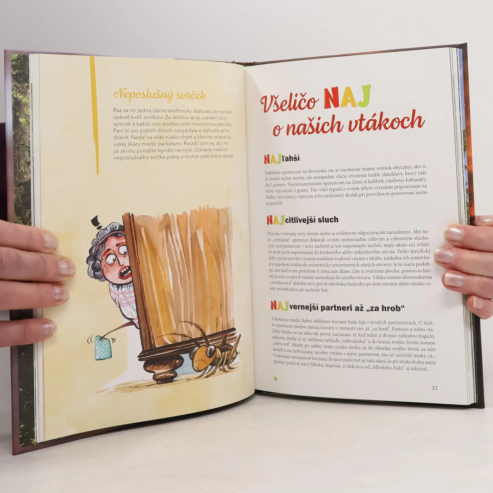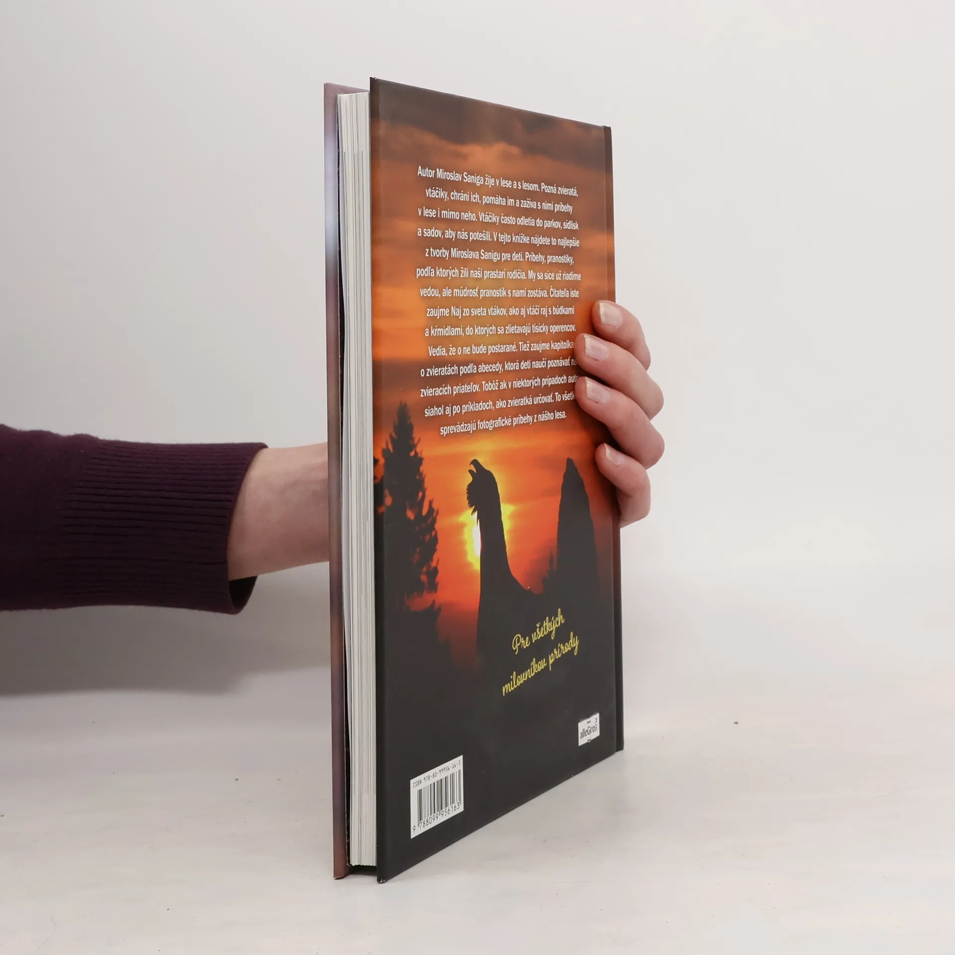 Autor Miroslav Saniga žije v lese a s lesom. Pozná zvieratá, vtáčiky, chráni ich, pomáha im a zažíva s nimi príbehy v lese i mimo neho. Vtáčiky často odletia do parkov, sídlisk a sadov, aby nás potešili. V tejto knižke nájdete to najlepšie z tvorby Miroslava Sanigu pre deti. Príbehy, pranostiky, podľa ktorých žili naši prastarí rodičia. My sa síce už riadime vedou, ale múdrosť pranostík s nami zostáva. Čitateľa iste zaujme Naj zo sveta vtákov, ako aj vtáčí raj s búdkami a kŕmidlami, do ktorých sa zlietavajú tisícky operencov. Vedia, že o ne bude postarané. Tiež zaujme kapitolka o zvieratách podľa abecedy, ktorá deti naučí poznávať ríšu zvieracích priateľov. Tobôž ak v niektorých prípadoch autor siahol aj po príkladoch, ako zvieratká určovať. To všetko sprevádzajú fotografické príbehy z nášho lesa.