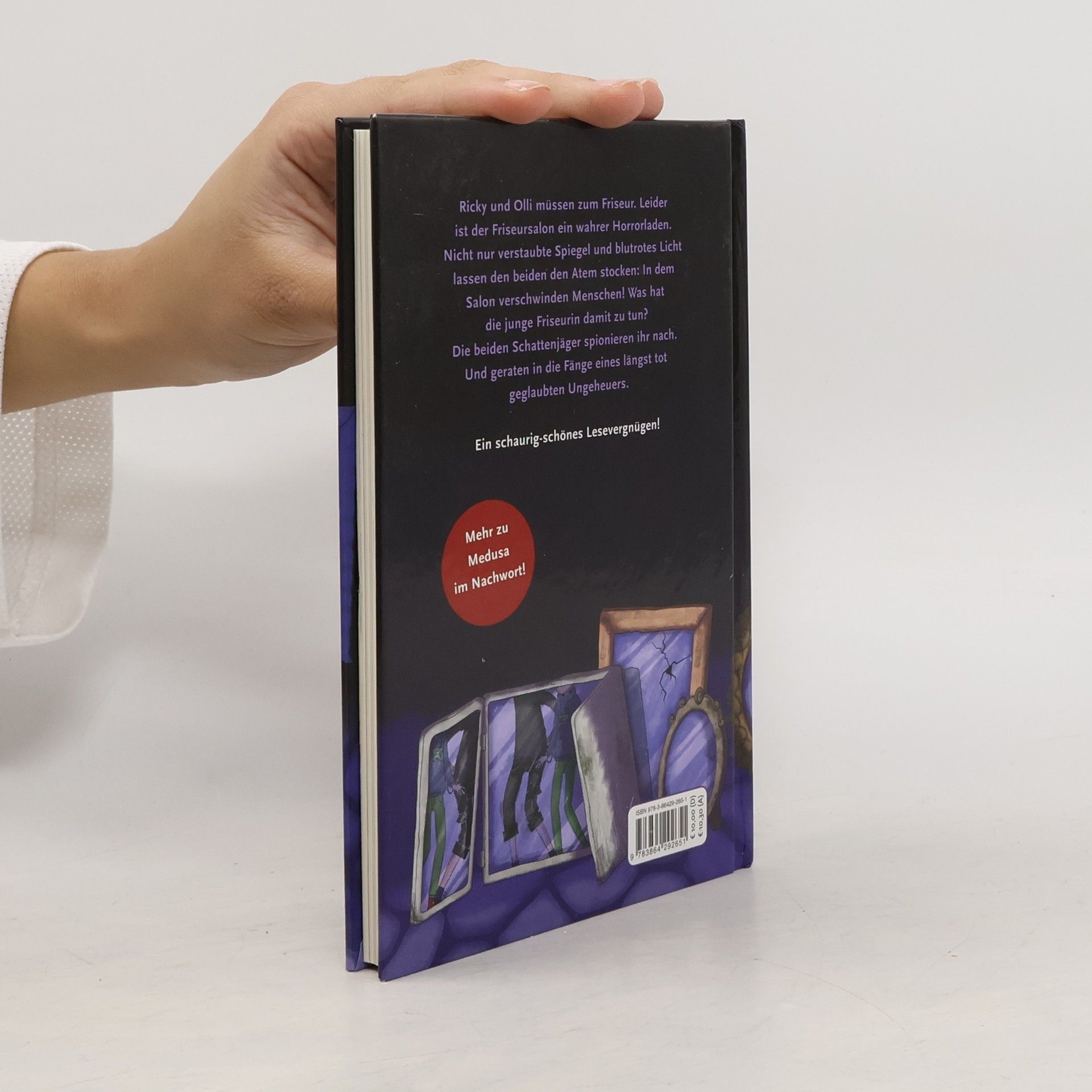 Gruselalarm im Geisterdorf! Ricky und Olli müssen zum Friseur, ob sie wollen oder nicht. Zu ihrem Unglück gibt es im Dorf nur einen alten und schäbigen Friseursalon, den die äußerst merkwürdigen Schwestern Stiena und Euralie betreiben. Ein wahrer Horrorladen! Als die zwei Freunde den Salon betreten, lassen ihnen nicht nur verstaubte Spiegel und blutrotes Licht den Atem stocken: Statt der uralten Schwestern steht die bildschöne Friseurin Magdalena Emilia D. aus den USA im Laden. Wer lässt sich da nicht gerne die Haar schneiden? Ricky und Oli sind so verzaubert, dass sie anfangs gar nicht merken, dass es in dem Friseursalon nicht mit rechten Dingen zugeht. In dem Salon verschwinden Menschen! Viele Kunden betreten den Laden, aber nicht alle kommen auch wieder heraus. Was hat die Friseurin damit zu tun? Die beiden Schattenjäger nehmen allen Mut zusammen und spionieren Magdalena nach. Dabei geraten sie in die Fänge eines längst tot geglaubten Ungeheuers. Und wieder einmal beweisen die Schattenjäger, dass sie es mit allen Monstern dieser Erde aufnehmen können. Ein herrlich schauriger Gruselroman mit Gänsehaut-Garantie vom Meister der Spannung Andreas Schlüter.