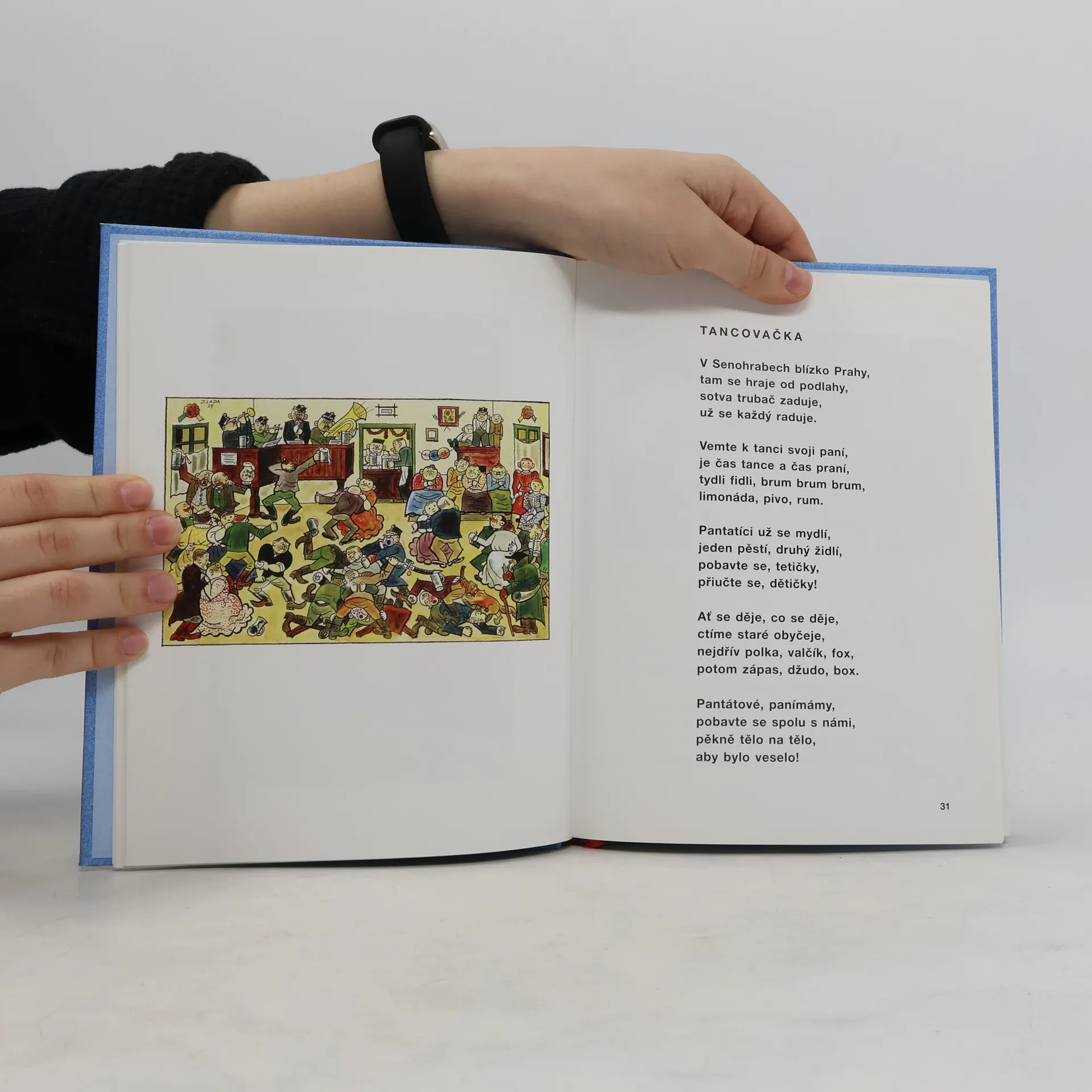 Knížka představuje soubor básniček Jiřího Žáčka inspirovaných obrázky Josefa Lady. Ve verších k obrázkům známým i méně známým se básník vypravil na výlet do světa Ladova dětství. Současný jazyk a pohled blízký dnešnímu dětskému čtenáři se tak spojuje s již klasickým ladovskými výjevy. Toto spojení dává malým čtenářům možnost navštívit krajinu hastrmanů, víl a mluvících kocourků a potkat v nich vlastní pocity, nálady, sny a přání.