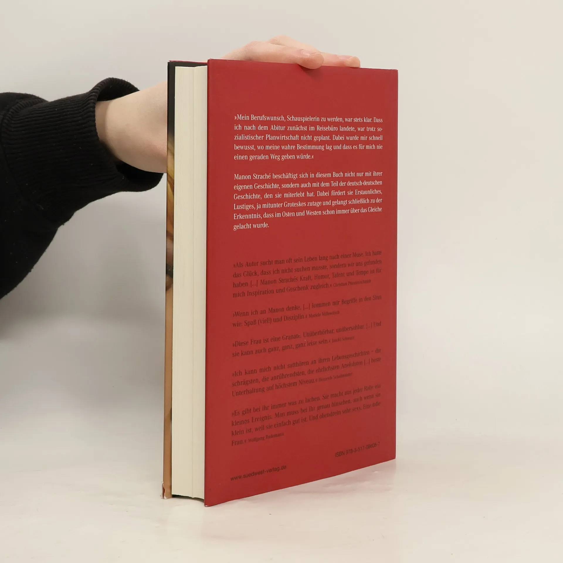 Eine deutsch-deutsche Lebensgeschichte inklusive humorvoller Alltagsbetrachtungen von Manon StrachéManon Straché ist auf der Theaterbühne genauso zu Hause wie vor der Kamera – und als Blumenhändlerin Claudia in der „Lindenstraße“ oder als Elfie Gerdes bei den „girl friends“ oder im „Hotel Elfie“ hat sie sich in die Herzen der Menschen gespielt. In diesem Buch erzählt Manon Straché nun ihre „Geschichte der Geschichte“: die Stationen ihres privaten und beruflichen Lebens, ihre Zeit in Ost und West – inklusive humorige Lebens- und Alltagsbetrachtungen. Natürlich geht es dabei auch um die Menschen, die ihren Weg gekreuzt haben, Dieter Hildebrandt, Horst Buchholz, Konstantin Wecker, Udo Jürgens, Gerhard Polt, Werner Schneyder, Jürgen Busse, Helmut Lohner, aber auch Erich Honecker und Jasar Arafat, der ihr die Hand küsste. Und so beschäftigt sich Manon Straché nicht nur mit ihrer eigenen Geschichte, sondern auch mit dem Teil der deutsch-deutschen Geschichte, den sie miterlebt hat. Dabei fördert sie Erstaunliches, Absurdes und Komisches zu politischen Witz und Alltagshumor, DDR-Slogans und Wortspiele – und die Erkenntnis, dass im Osten und Westen schon immer über das Gleiche gelacht wurde.