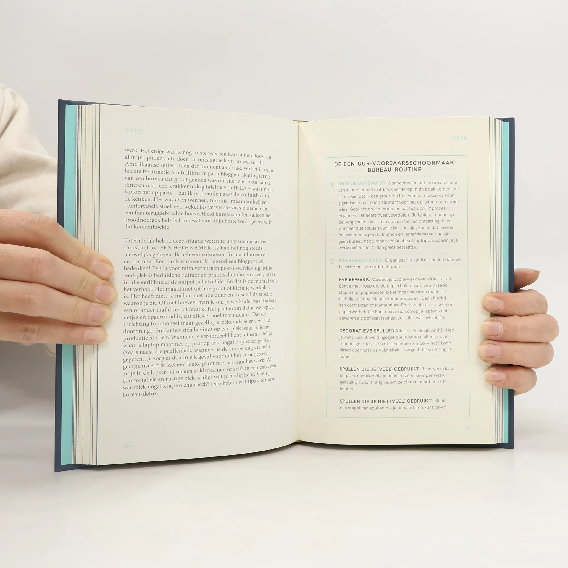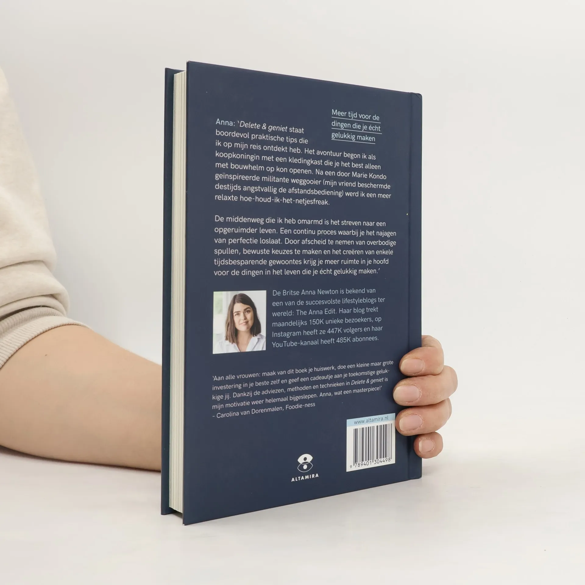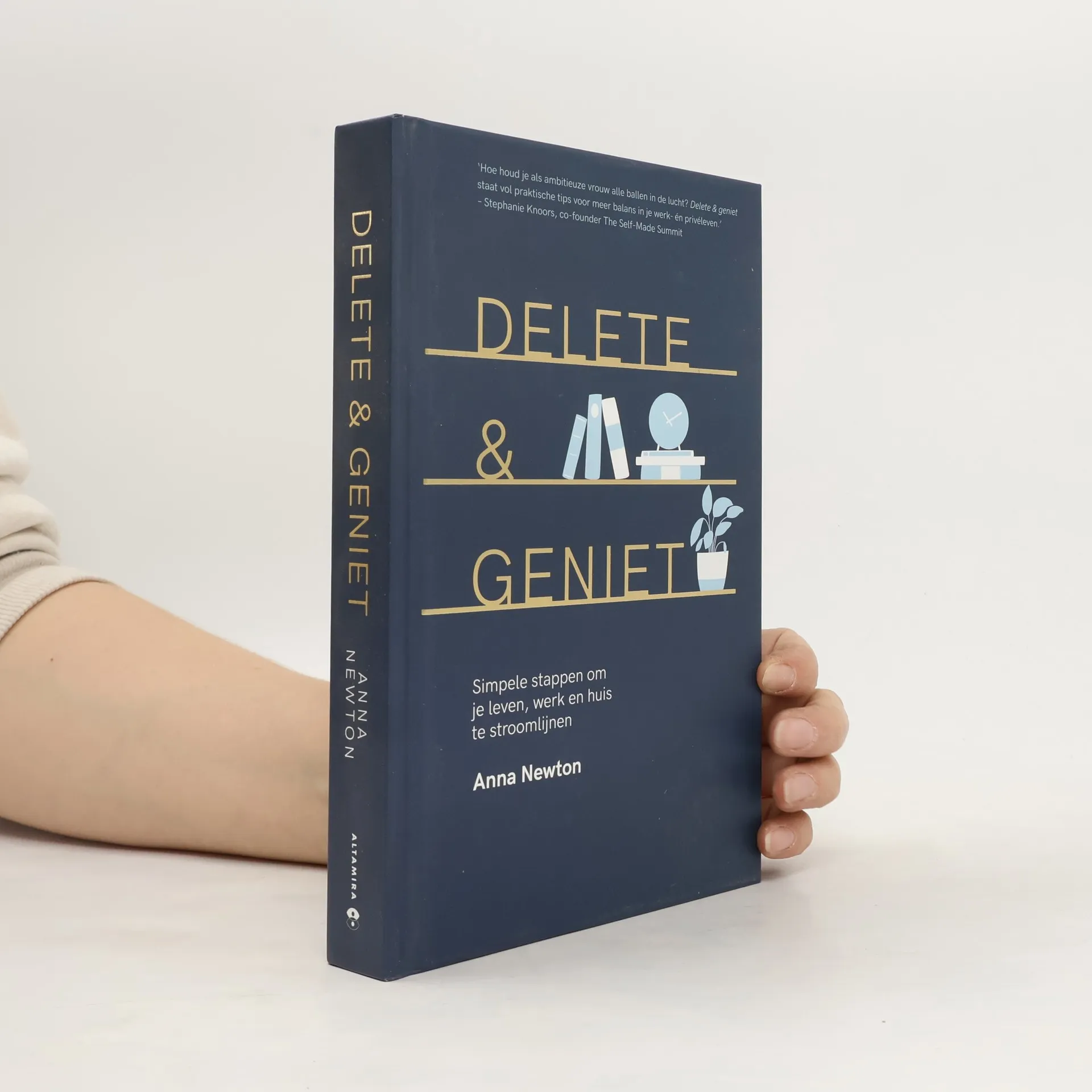 Anna: 'Delete & geniet' is een boek boordevol praktische tips die ik ontdekt heb op mijn reis. Een avontuur van koopkoningin met een kledingkast die je het best alleen met bouwhelm op kon openen, via een door Marie Kondo geïnspireerde militante weggooier (waarbij mijn vriend angstvallig de afstandsbediening beschermde), naar een meer relaxte hoe-houd-ik-het-netjesfreak. De middenweg die ik heb omarmd, is het streven naar opgeruimder leven. Een continu proces dat het najagen van perfectie loslaat. Door afscheid te nemen van overbodige spullen, bewuste keuzes te maken en het creëren van enkele tijdbesparende gewoontes in het dagelijkse leven krijg je meer ruimte in je hoofd voor de zaken in het leven die echt gelukkig maken.'
