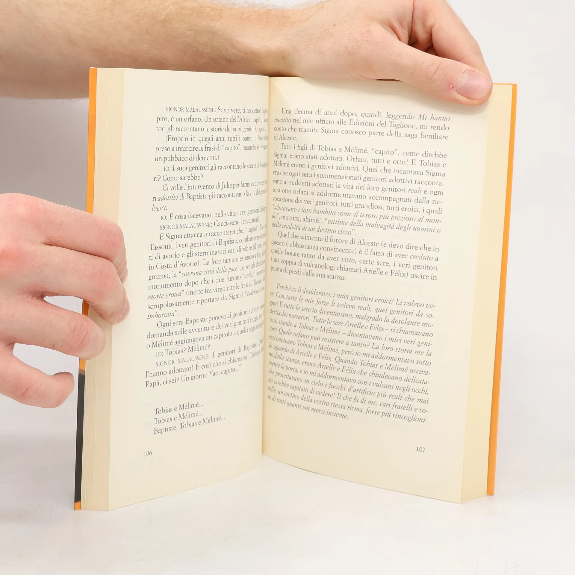 La mia sorellina minore Verdun è nata che già urlava ne La fata carabina , mio nipote È Un Angelo è nato orfano ne La prosivendola , mio figlio Signor Malaussène è nato da due madri nel romanzo che porta il suo nome e mia nipote Maracuja è nata da due padri ne La passione secondo Thérèse . E ora li ritroviamo adulti in un mondo che più esplosivo non si può, dove si mitraglia a tutto andare, dove qualcuno rapisce l’uomo d’affari Georges Lapietà, dove Polizia e Giustizia procedono mano nella mano senza perdere un’occasione per farsi lo sgambetto, dove la Regina Zabo, editrice accorta, regna sul suo gregge di scrittori fissati con la verità vera, proprio quando tutti mentono a tutti. Tutti tranne me, ovviamente. Io, tanto per cambiare, mi becco le solite mazzate. Benjamin Malaussène “Io sottoscritto Benjamin Malaussène vi sfido, oggi, chiunque voi siate, ovunque vi nascondiate, quale che sia il vostro grado di indifferenza alle cose di questo mondo, a ignorare l’ultima notizia appena uscita, la notiziona che farà discutere la Francia e crepitare i soscial.”