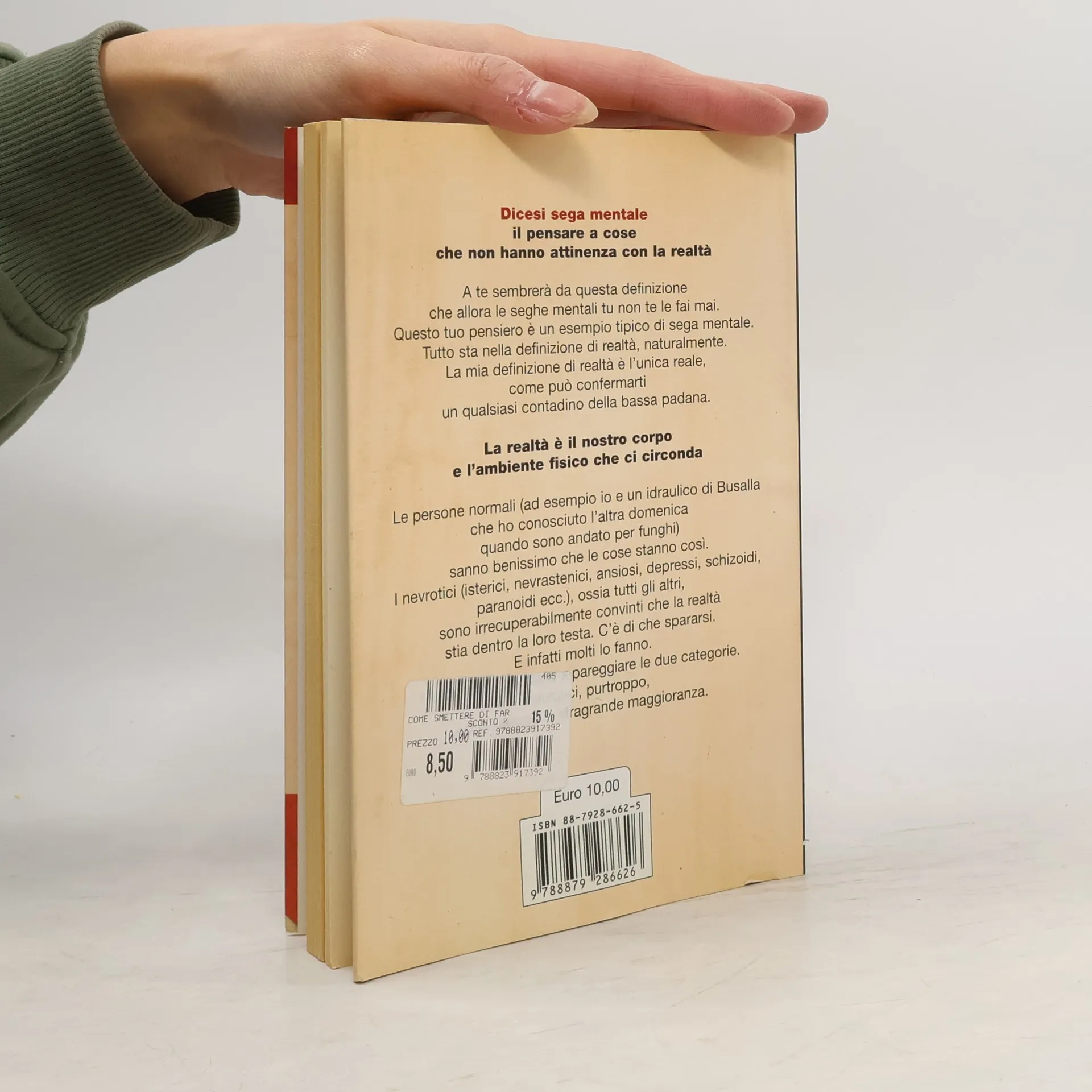 There are currently of book Saggi: Come smettere di farsi le seghe mentali e godersi la vita (2003) in stock.