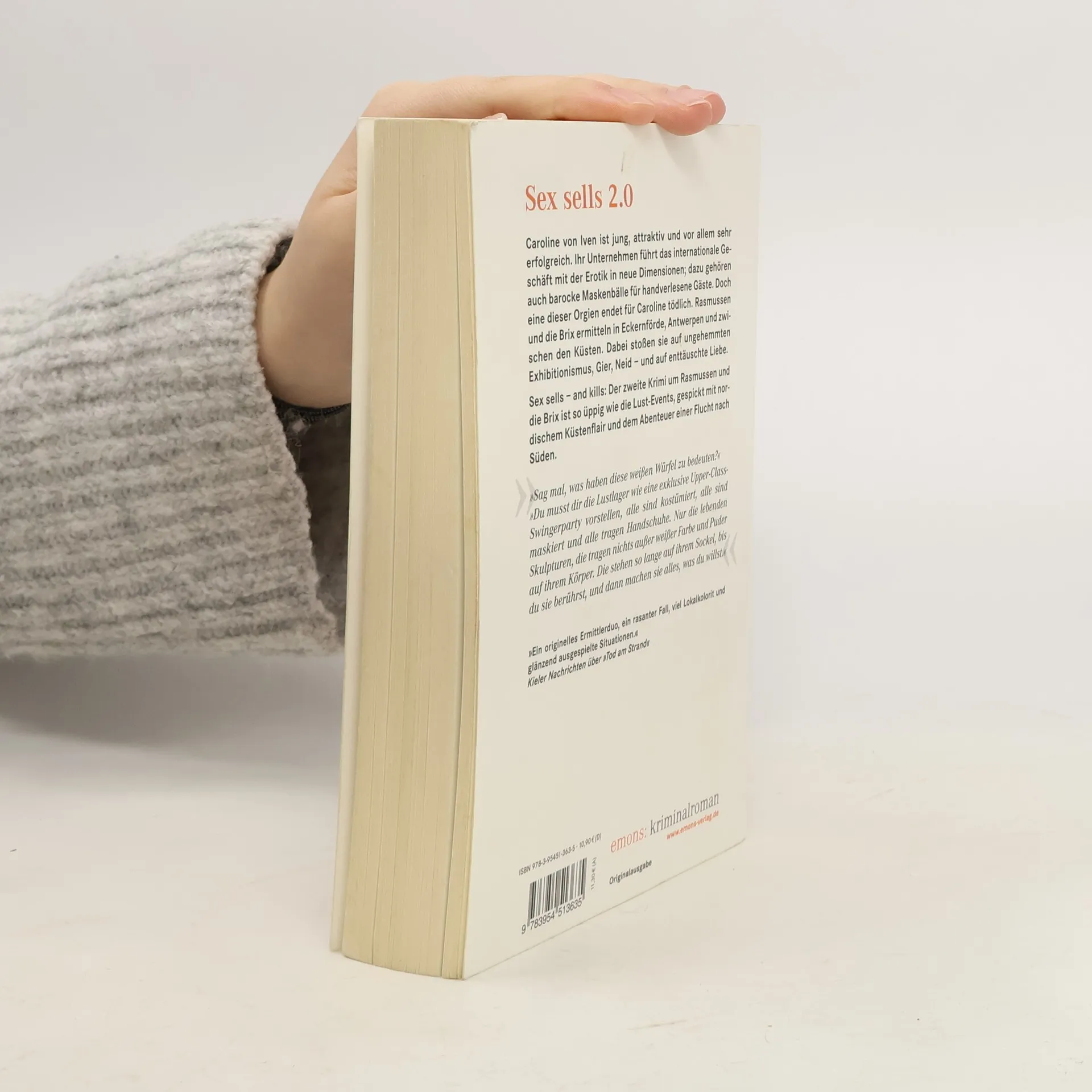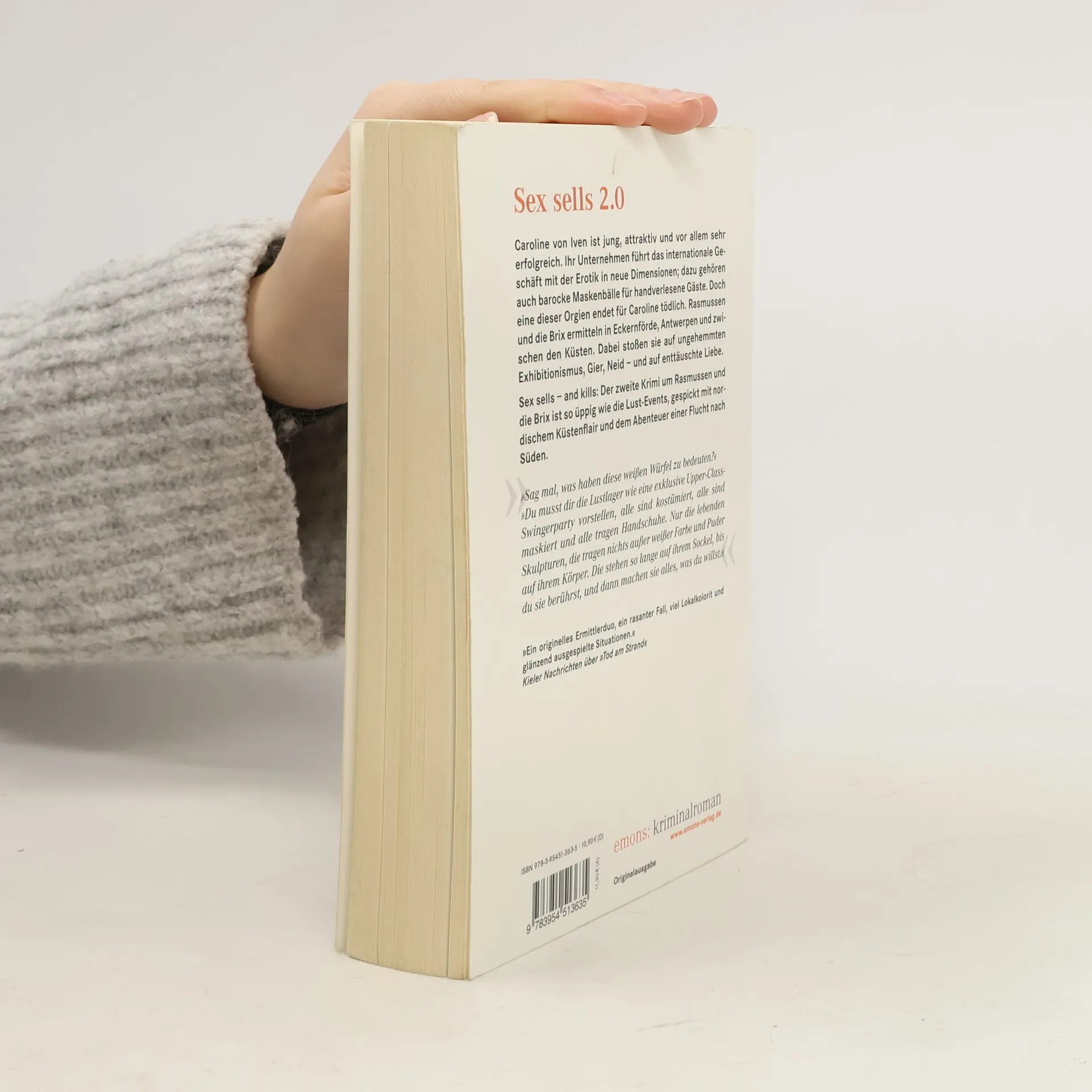 Caroline von Iven ist jung, attraktiv und vor allem sehr erfolgreich. Ihr Unternehmen führt das internationale Geschäft mit der Erotik in neue Dimensionen; dazu gehören auch barocke Maskenbälle für handverlesene Gäste. Doch eine dieser Orgien endet für Caroline tödlich. Rasmussen und die Brix ermitteln in Eckernförde, Antwerpen und zwischen den Küsten. Dabei stoßen sie auf ungehemmten Exhibitionismus, Gier, Neid – und auf enttäuschte Liebe.