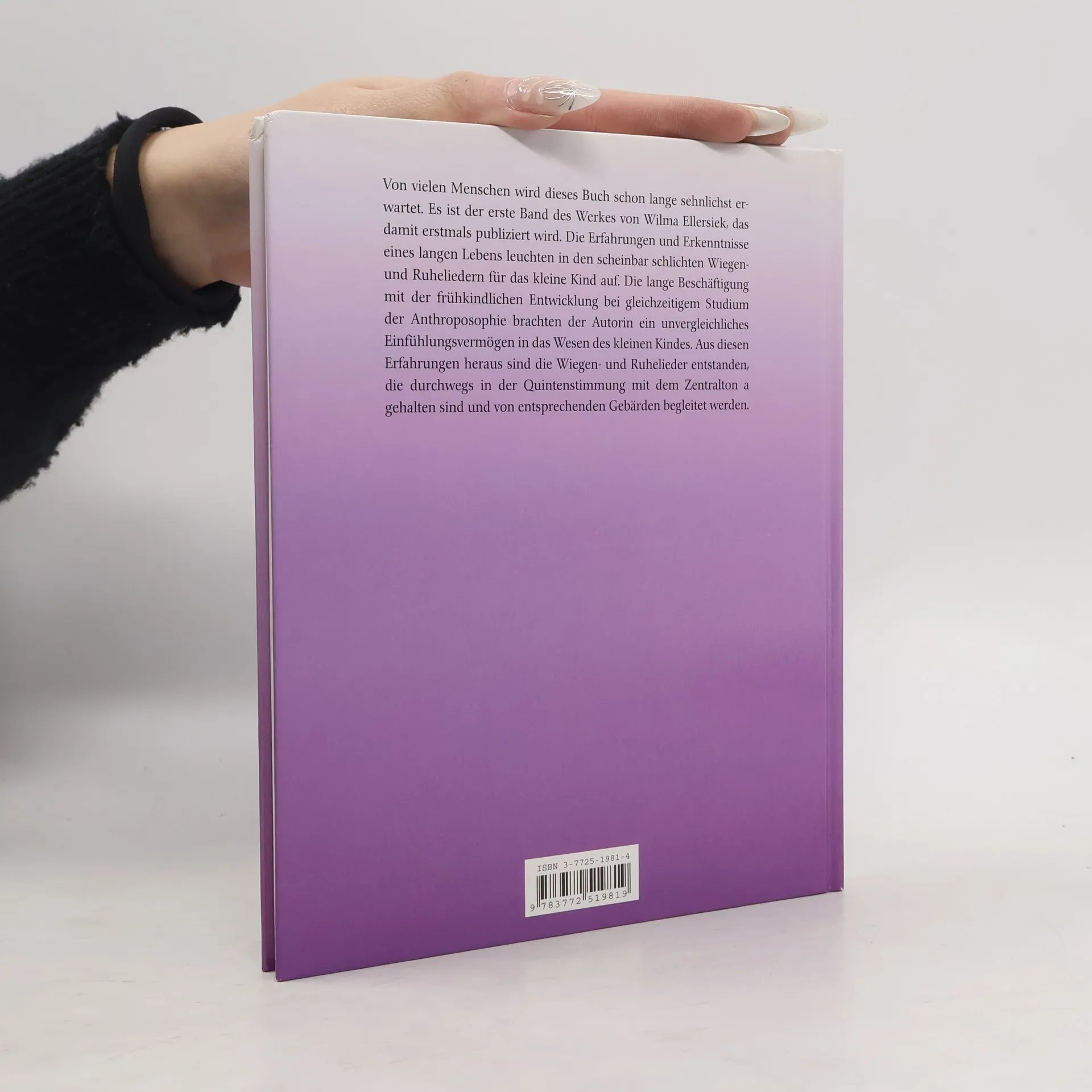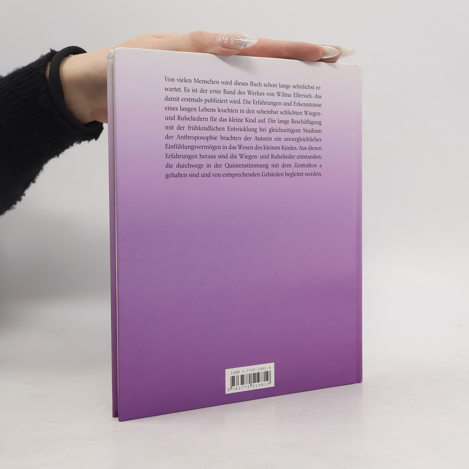Für die unterschiedlichsten Lebenssituationen können Eltern und Erzieher das jeweils passende Lied mit begleitenden Gebärden finden, zum Einschlafen, Ausruhen, zum Schmusen und Kosen. Dieses Buch wird ein treuer Begleiter in vielen Lebenssituationen sein. Von vielen Menschen wird dieses Buch schon lange sehnlichst erwartet. Es ist der erste Band des Werkes von Wilma Ellersiek, das damit erstmals publiziert wird. Die Erfahrungen und Erkenntnisse eines langen Lebens leuchten in den scheinbar schlichten Wiegen- und Ruheliedern für das kleine Kind auf. Die lange Beschäftigung mit der frühkindlichen Entwicklung bei gleichzeitigem Studium der Anthroposophie, brachten der Autorin ein unvergleichliches Einfühlungsvermögen in das Wesen des kleinen Kindes. Aus diesen Erfahrungen heraus sind die Wiegen- und Ruhelieder entstanden, die durchwegs in der Quintenstimmung mit dem Zentralton a gehalten sind und von entsprechenden Gebärden begleitet werden.