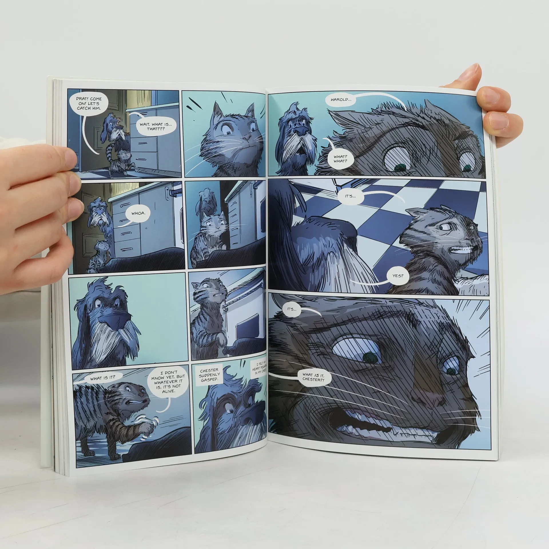 Though scoffed at by Harold the dog, Chester the cat tries to warn his human family that their foundling baby bunny must be a vampire.