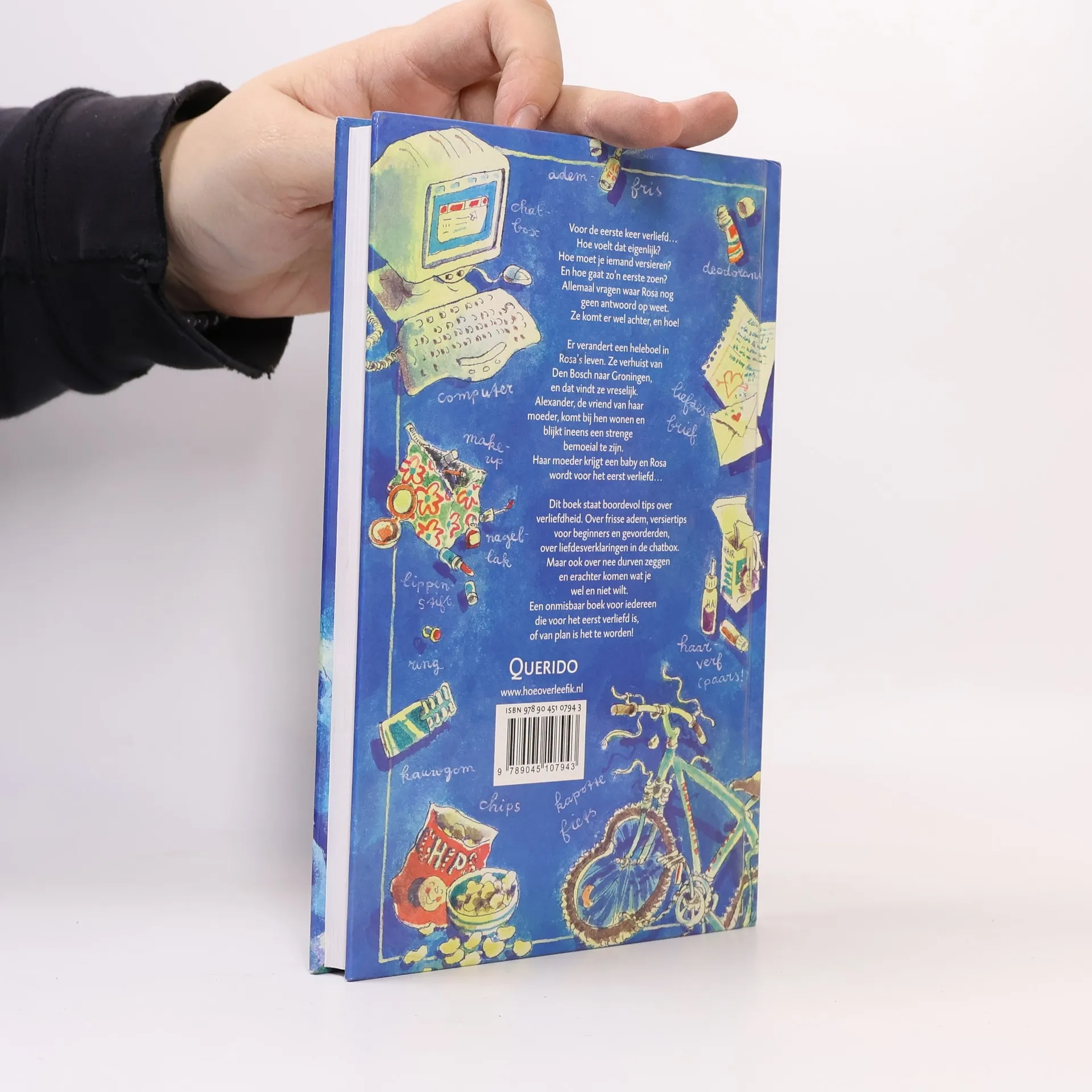 Voor de eerste keer verliefd… Hoe voelt dat eigenlijk? Hoe moet je iemand versieren? En hoe gaat zo’n eerste zoen? Er verandert een heleboel in Rosa’s leven. Ze verhuist van Den Bosch naar Groningen, en dat vindt ze vreselijk. Alexander, de vriend van haar moeder, komt bij hen wonen en blijkt ineens een strenge bemoeial te zijn. Haar moeder krijgt een baby en Rosa wordt voor het eerst verliefd…Dit boek staat boordevol tips over verliefdheid. Over frisse adem, versiertips voor beginners en gevorderden, over liefdesverklaringen in de chatbox. Maar ook over nee durven zeggen en erachter komen wat je wel en niet wilt. Een onmisbaar boek voor iedereen die voor het eerst verliefd is, of van plan is het te worden!