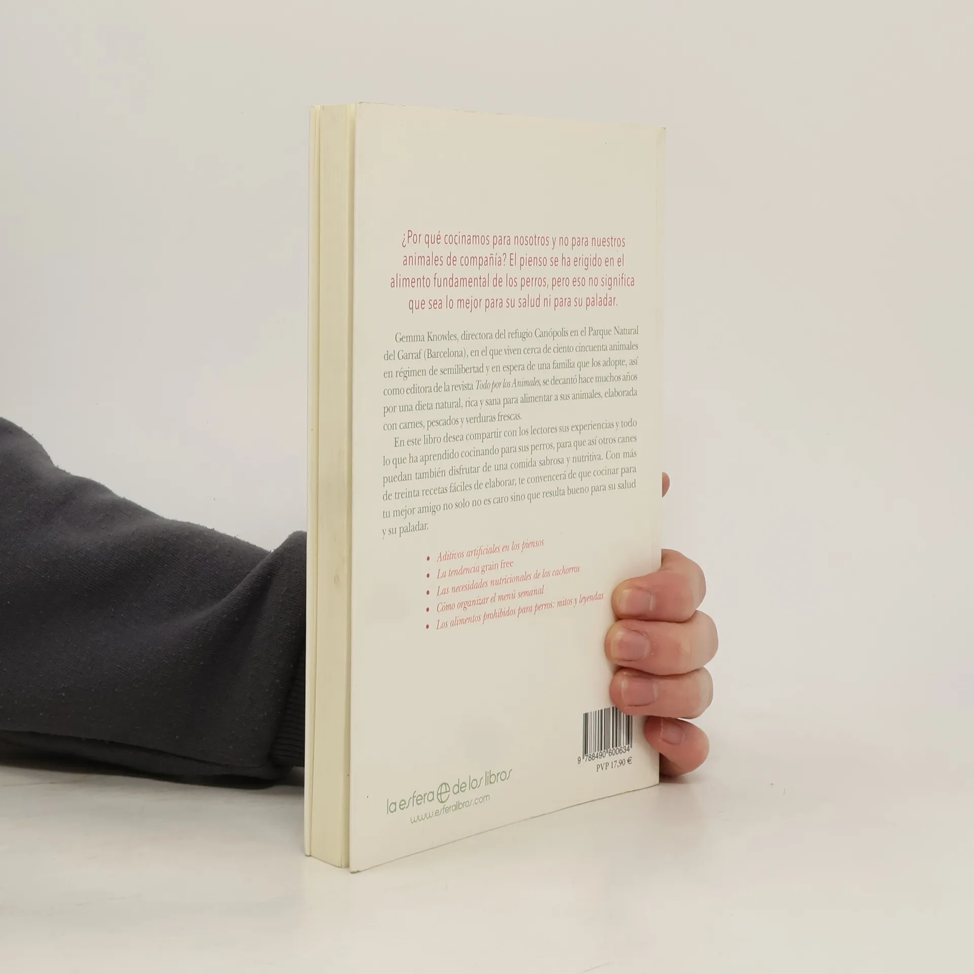 ¿Por qué cocinamos para nosotros y no para nuestros animales de compañía? El pienso se ha erigido en el alimento fundamental de los perros, pero eso no significa que sea lo mejor para su salud ni para su paladar. Gemma Knowles, directora del refugio Canópolis en el Parque Natural del Garraf (Barcelona), en el que viven cerca de ciento cincuenta animales en régimen de semilibertad y en espera de una familia que los adopte, así como editora de la revista Todo por los Animales, se decantó hace muchos años por una dieta natural, rica y sana, para alimentar a sus animales, elaborada con carnes, pescados y verduras frescas. En este libro desea compartir con los lectores sus experiencias y todo lo que ha aprendido cocinando para sus perros, para que así otros canes puedan también disfrutar de una comida sabrosa y nutritiva.
