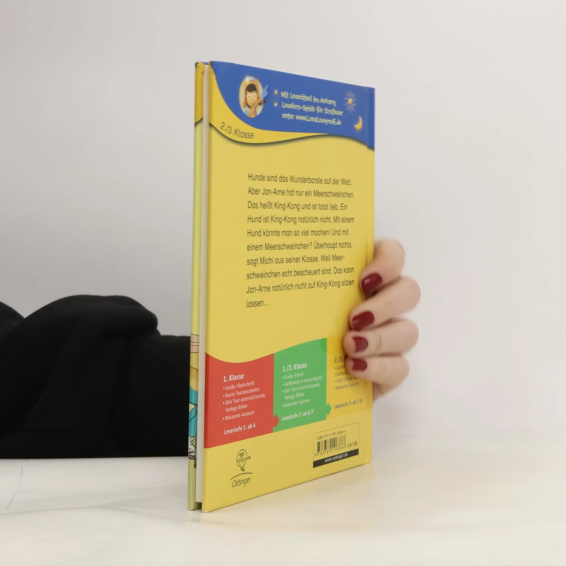 Hunde sind das Wunderbarste auf der Welt. Aber Jan-Arne hat nur ein Meerschweinchen. Das heißt King-Kong und ist total lieb. Ein Hund ist King-Kong natürlich nicht. Mit einem Hund könnte man so viel machen! Und mit einem Meerschweinchen? Überhaupt nichts, sagt Michi aus seiner Klasse. Weil Meerschweinchen echt bescheuert sind. Das kann Jan-Arne natürlich nicht auf King-Kong sitzen lassen... Lesen lernen mit "Büchersterne" für die 2./3. Klasse: einfacher Satzbau, fortgeschrittenes Textniveau und ein höherer Textanteil, der die Lesefähigkeit geübter Leseanfänger fördert. Dazu ein Leserätsel im Anhang.