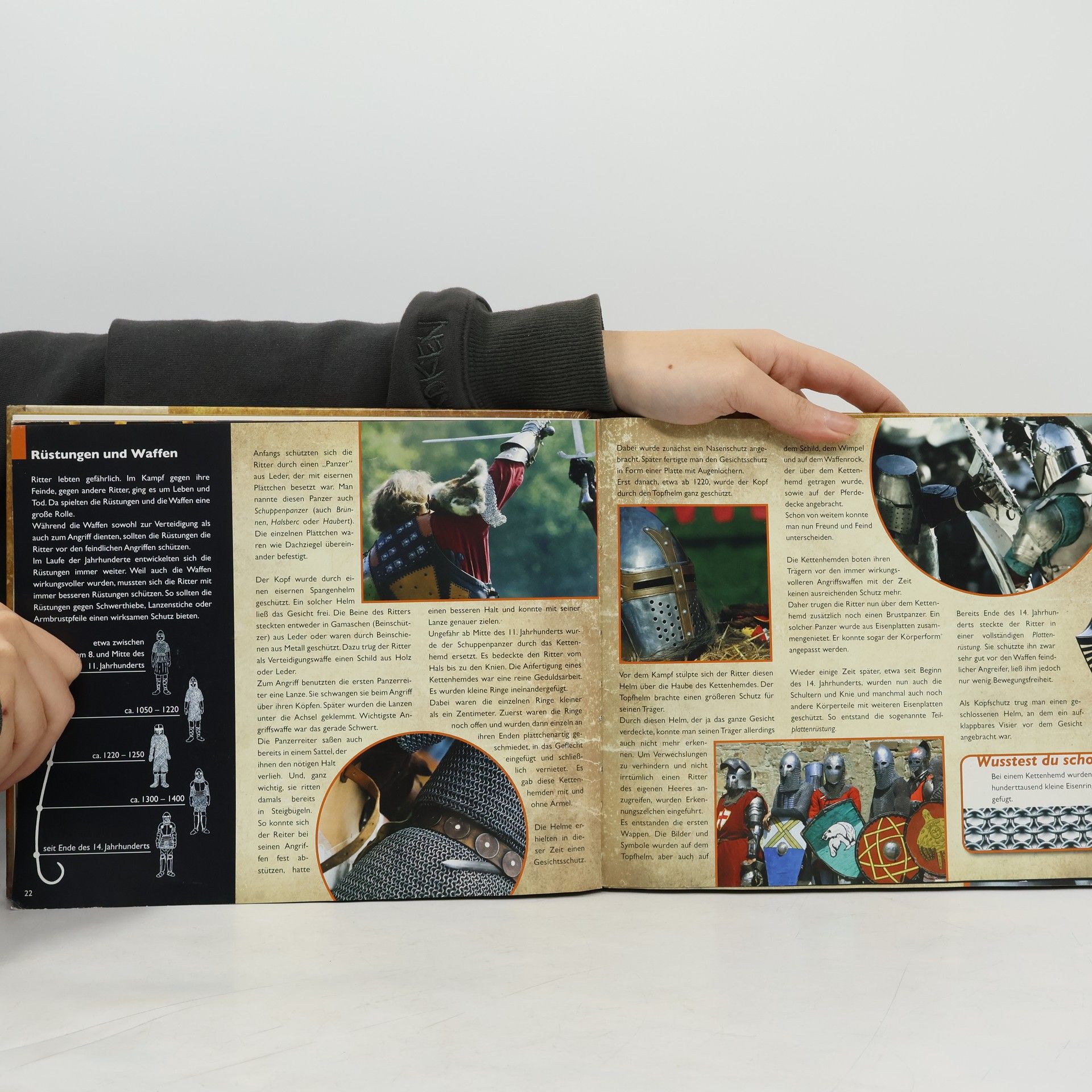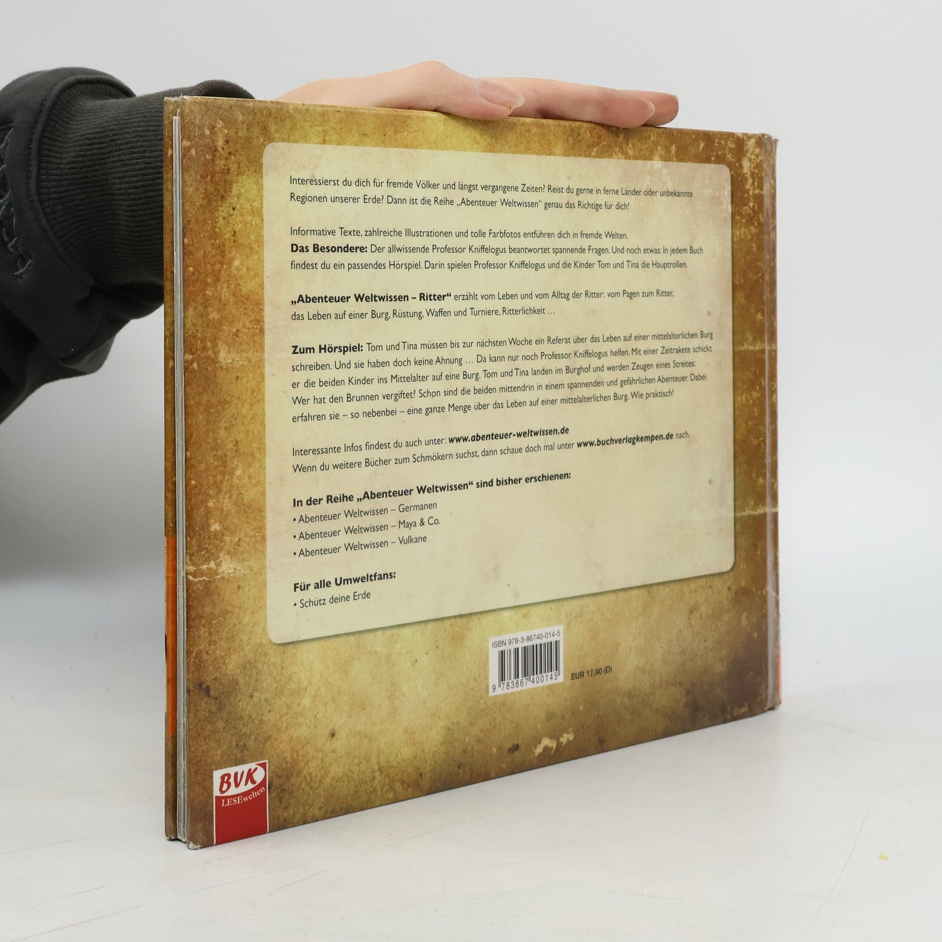 Aus dem Inhalt: Vom Pagen zum Ritter - Das Leben auf einer Burg - Waffenkunde, Turniere, Kriegsführung - Von der besonderen Stellung der Ritter: Ritterlichkeit, Mut und Gottesfurcht - Wappen basteln, eine Ritterburg bauen, ein Ritterfest feiern ... Zum Hörspiel: Tom und Tina wissen nicht mehr weiter: Sie müssen bis zur nächsten Woche ein Referat über das Leben auf einer mittelalterlichen Burg schreiben. Und sie haben doch keine Ahnung ... Da kann nur noch Professor Kniffelogus helfen. Tatsächlich: Der kluge Professor weiss wie immer Rat. Mit einer Zeitrakete schickt er die beiden Kinder ins Mittelalter auf eine Burg. Tom und Tina landen im Burghof und werden Zeugen eines Streites: Wer hat den Brunnen vergiftet? Schon sind die beiden mitten drin in einem spannenden und gefährlichen Abenteuer. Dabei erfahren sie - so nebenbei - eine ganze Menge über das Leben auf einer mittelalterlichen Burg. Wie praktisch! (Quelle: Homepage des Verlags).