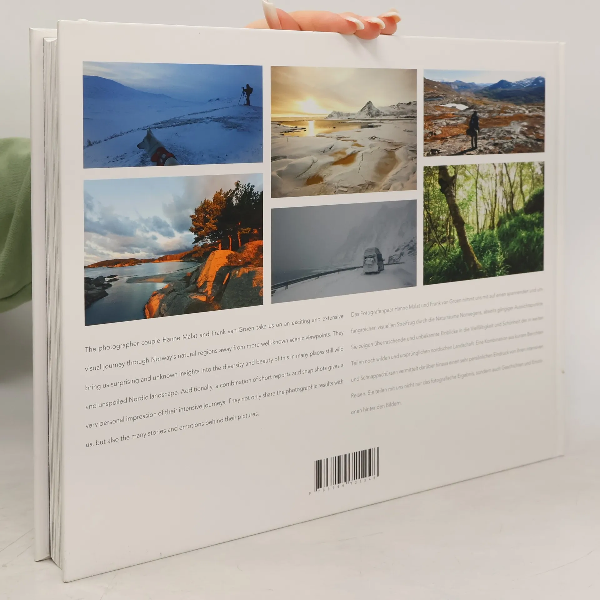 The photographer couple Hanne Malat and Frank van Groen take us on an adventure through the diverse landscapes of Norway away from the main tourist trails. The photographs deliver amazing, unexpected insights into the raw and unspoiled nature of this nordic country. At the beginning of each chapter, excerpts of the couple s travel diary both in German and English and personal snapshots let us take part in their journey. Thus, we get to experience not only the spectacular landscapes on photograph, but also the emotions behind the images. The large-format landscape stills were photographed over the course of five years, between 2008 and 2012, on a total of seven trips, in different regions and seasons."