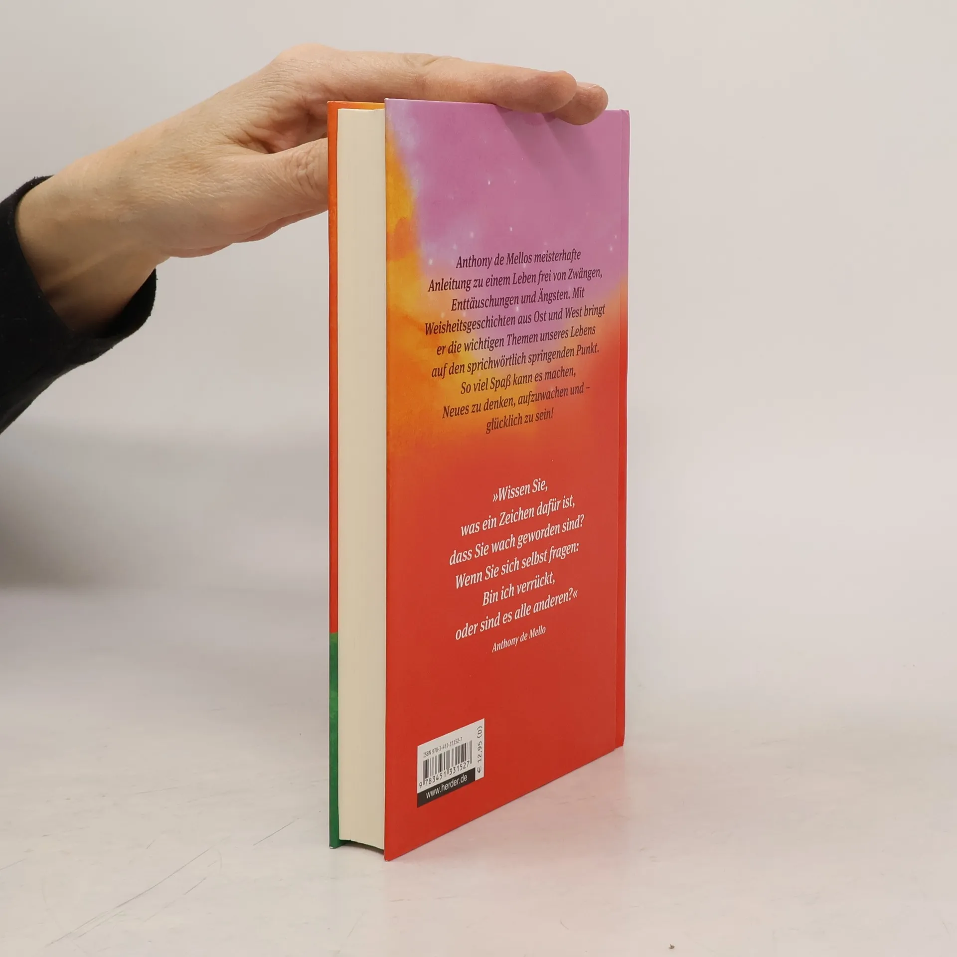 Anthony de Mellos unkonventionelle Anleitung zu einem Leben frei von Zwängen, Enttäuschungen und Ängsten. Mit Weisheitsgeschichten aus Ost und West bringt er die Kernthemen menschlichen Lebens auf den sprichwörtlich springenden Punkt. Erstaunlich, wie viel Spaß es machen kann, die Tiefen des menschlichen Daseins auszuloten!