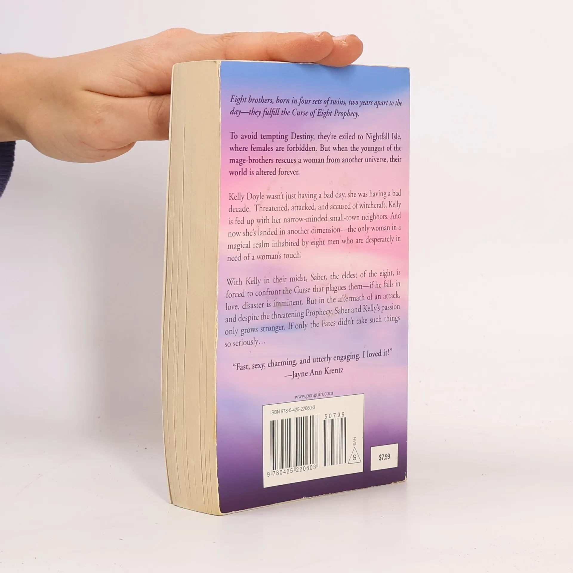 <b>First in the Sons of Destiny series-now in mass market.</b> To avoid tempting destiny, four sets of twin mage-brothers are exiled to Nightfall Island, where females are forbidden. But when the youngest rescues a woman from another universe, their world is altered forever.