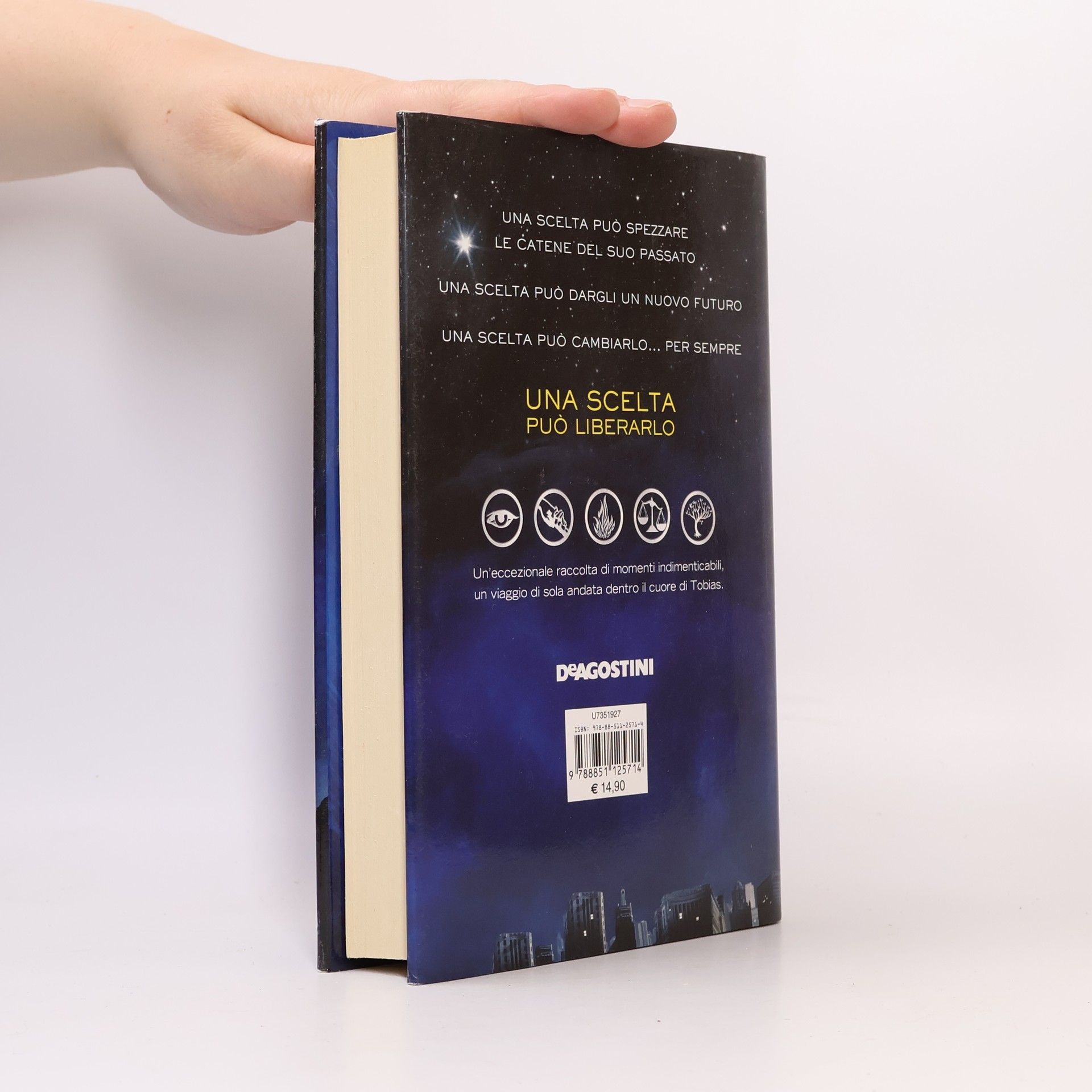 Una raccolta di momenti indimenticabili, un viaggio di sola andata nel cuore di Tobias. Veronica Roth ci riporta nella Chicago distopica di Tris, raccontando i momenti fondamentali della vita di Quattro e regalandoci così un viaggio nella mente del tenebroso e tormentato protagonista maschile di Divergent. Quando per Tobias Eaton – il figlio del leader degli Abneganti – arriva il Giorno della Scelta, il ragazzo non ha dubbi: vuole andarsene dalla fazione che per sedici anni è stata la sua prigione e allontanarsi dalla furia del padre violento. Per il suo nuovo inizio sceglie di unirsi agli Intrepidi, perché desidera imparare da loro a sconfiggere le proprie paure e a essere coraggioso. Con un nuovo nome, “Quattro” comincia l’addestramento, che lo porta ben presto a scalare la classifica degli iniziati e ad attirare su di sé l’interesse delle più alte sfere dirigenziali, che lo vorrebbero trasformare nel più giovane capo fazione che gli Intrepidi abbiano mai avuto. Ma è davvero così… oppure c’è qualcosa di più inquietante dietro gli intrighi attuati dai leader Intrepidi? Due anni dopo, Quattro – disgustato dalle trame della sua fazione – è pronto a fare la propria mossa e a lasciarsi di nuovo tutto alle spalle, ma l’arrivo di una giovane iniziata cambia ogni cosa. Perché, grazie a lei, Quattro scopre un lato di sé che non credeva di possedere. Grazie a lei, potrebbe tornare a essere semplicemente Tobias.