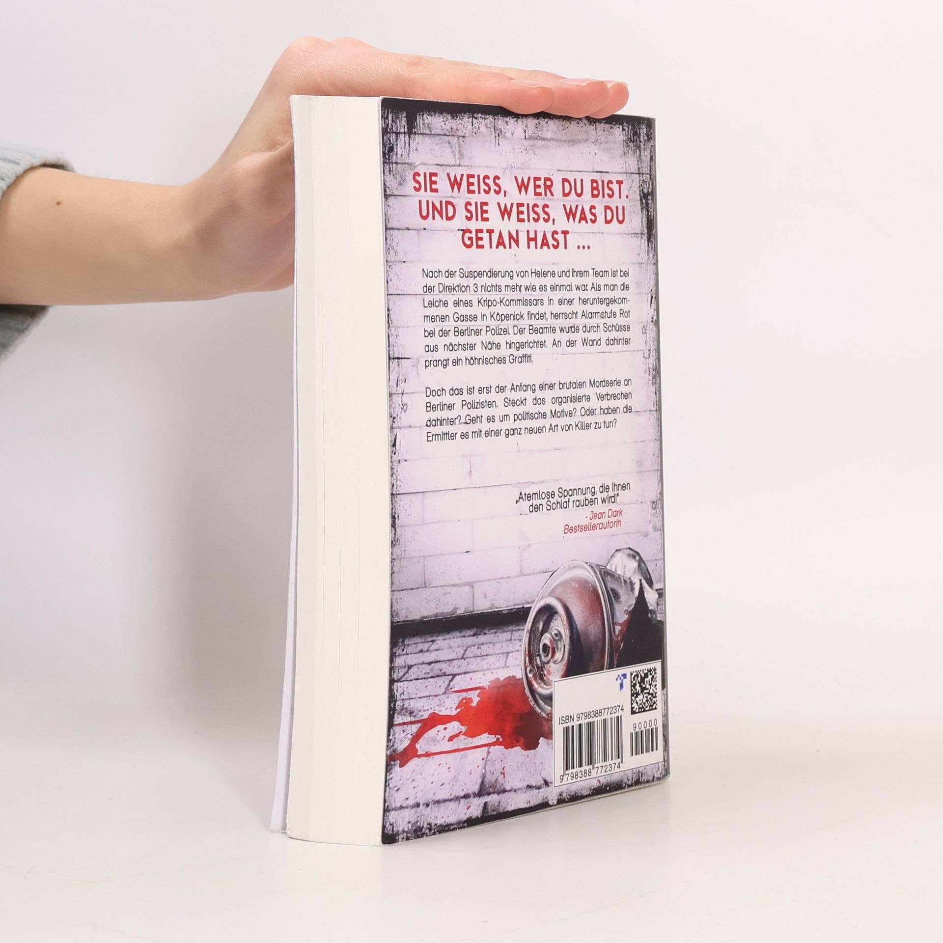 Der brandneue Thriller aus der Bestseller-Reihe von Oliver Moros Sie weiß, was du getan hast ... Zum Abschluss zog sie eine Spraydose hervor, schüttelte sie, und sprühte etwas an die Wand hinter dem Toten. Auch das dauerte nur Sekunden. Dann huschte sie aus der Gasse, so unauffällig und geräuschlos, wie sie gekommen war, lief zu ihrem Wagen und fuhr davon, wobei sie während der gesamten Fahrt die gebotene Höchstgeschwindigkeit kein einziges Mal überschritt. Nach der Suspendierung von Helene und ihrem Team ist bei der Direktion 3 nichts mehr, wie es einmal war. Als man die Leiche eines Kripo-Kommissars in einer heruntergekommenen Gasse in Köpenick findet, herrscht Alarmstufe Rot bei der Berliner Polizei. Der Beamte wurde durch Schüsse aus nächster Nähe hingerichtet. An der Wand dahinter prangt ein höhnisches Graffiti. Doch das ist erst der Anfang einer brutalen Mordserie an Berliner Polizisten. Steckt das organisierte Verbrechen dahinter? Geht es um politische Motive? Oder haben die Ermittler es mit einer ganz neuen Art von Killer zu tun? Während Helene von den Dämonen ihrer Vergangenheit heimgesucht wird, beginnt für Stein und seine Freunde ein gnadenloser Wettlauf gegen die Zeit. Denn als krönenden Abschluss hat sich der Killer ein ganz besonderes Ziel ausgesucht ... Inspiriert von einem wahren Fall. ***** Für alle Fans von spannungsgeladenen Thrillern vor dem realistischen Hintergrund der größten Metropole Deutschlands, basierend auf wahren Verbrechen. Nichts für schwache Nerven. Die taffe Ermittlerin HK Helene Edel, der erfahrene forensische Psychiater und Profiler Doktor Felix Stein und ihr eingeschworenes Team ermitteln unter Zeitdruck - mit Hirn, Herz und einer Prise Humor. Auch dieser Band ist unabhängig von den anderen "Edel & Stein"- Thrillern lesbar. ***** Begeisterte Leserstimmen zu den Thrillern von Oliver Moros: "Mysteriös und abgründig! Spannung bis zur letzten Seite: In diesem düsteren Psychothriller des Bestsellerduos Oliver Moros ist nichts, wie es scheint." (Amazon Kunde) "Ich konnte richtig in die Story eintauchen, hatte so meine Ahnungen, aber was der Schluss brachte, hat mich voll geplättet. Da wäre ich nicht drauf gekommen." (Melli) "Auch dieser Fall Edel und Stein sowie Max und Sam war wieder spannend und nervenzerreißend. Grandios und empfehlenswert." (Kindle-Kunde) "Alles sehr spannend und gekonnt verwirrend. Die Gedanken spielen verrückt und man fiebert mit. Mit dem klaren und flüssigen Schreibstil zieht der Autor den Leser mühelos in den Bann der Handlung. Die Protagonisten wurden unglaublich realistisch charakterisiert und es lief die ganze Zeit ein Film in meinem Kopf ab." (Helga O.) "Die Ermittlungsarbeit der Ermittler hat mir sehr zugesagt. Ich konnte deren Gedanken folgen, meine eigenen Vermutungen anstellen und wurde durch die vielen Wendungen immer wieder überrascht." (Sandra) "Ein Thriller, der von mir eine ganz klare Leseempfehlung bekommt! Allein schon, weil das Ende so unvorhersehbar war, aber auch, weil der Schreibstil von Oliver Moros einfach super ist." (Christine Enge) ***** Bisher von Oliver Moros erschienen: Die Edel & Stein Thriller: Band 1: ROSENBLUT Band 2: TODESKREIS Band 3: SÜNDENKREUZ Band 4: ALTE SCHULD Band 5: TODESZEILEN Band 6: TOTER ENGEL Band 7: RATTENFÄNGER Band 8: LETZTE ZEUGIN Außerdem: NORDSEESCHMERZ (Küsten-Thriller)