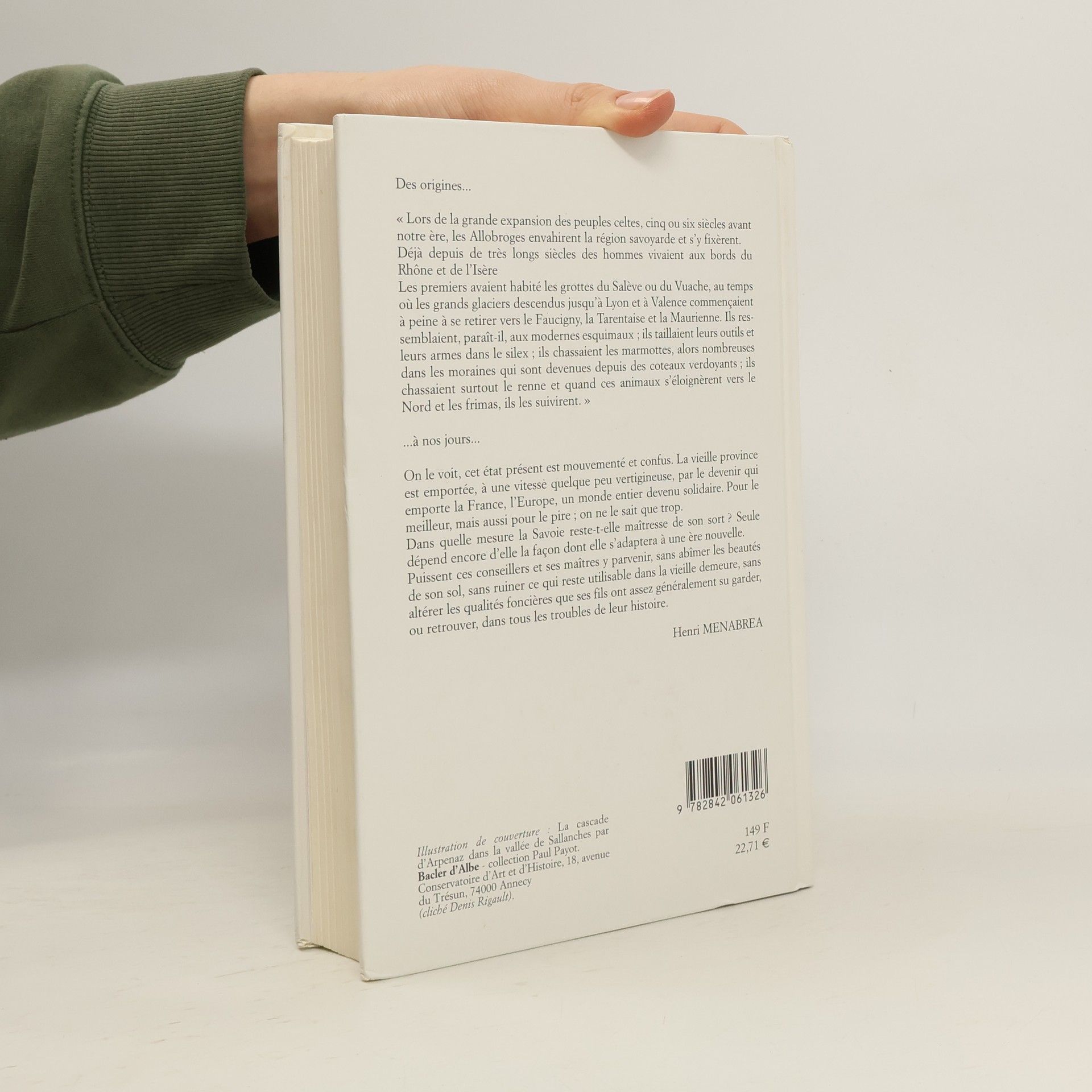Des origines... " Lors de la grande expansion des peuples celtes, cinq ou six siècles avant notre ère, les Allobroges envahirent la région savoyarde et s'y fixèrent. Déjà depuis de très longs siècles des hommes vivaient aux bords du Rhône et de l'Isère Les premiers avaient habité les grottes du Salève ou du Vuache, au temps où les grands glaciers descendus jusqu'à Lyon et à Valence commençaient à peine à se retirer vers le Faucigny, la Tarentaise et la Maurienne. Ils ressemblaient, paraît-il, aux modernes esquimaux ; ils taillaient leurs outils et leurs armes dans le silex ; ils chassaient les marmottes, alors nombreuses dans les moraines qui sont devenues depuis des coteaux verdoyants ; ils chassaient surtout le renne et quand ces animaux s'éloignèrent vers le Nord et les frimas, ils les suivirent. " à nos jours... On le voit, cet état présent est mouvementé et confus. La vieille province est emportée, à une vitesse quelque peu vertigineuse, par le devenir qui emporte la France, l'Europe, un monde entier devenu solidaire. Pour le meilleur, mais aussi pour le pire ; on ne le sait que trop. Dans quelle mesure la Savoie reste-t-elle maîtresse de son sort ? Seule dépend encore d'elle la façon dont elle s'adaptera à une ère nouvelle. Puissent ces conseillers et ses maîtres y parvenir, sans abîmer les beautés de son sol, sans ruiner ce qui reste utilisable dans la vieille demeure, sans altérer les qualités foncières que ses fils ont assez généralement su garder, ou retrouver, dans tous les troubles de leur histoire.