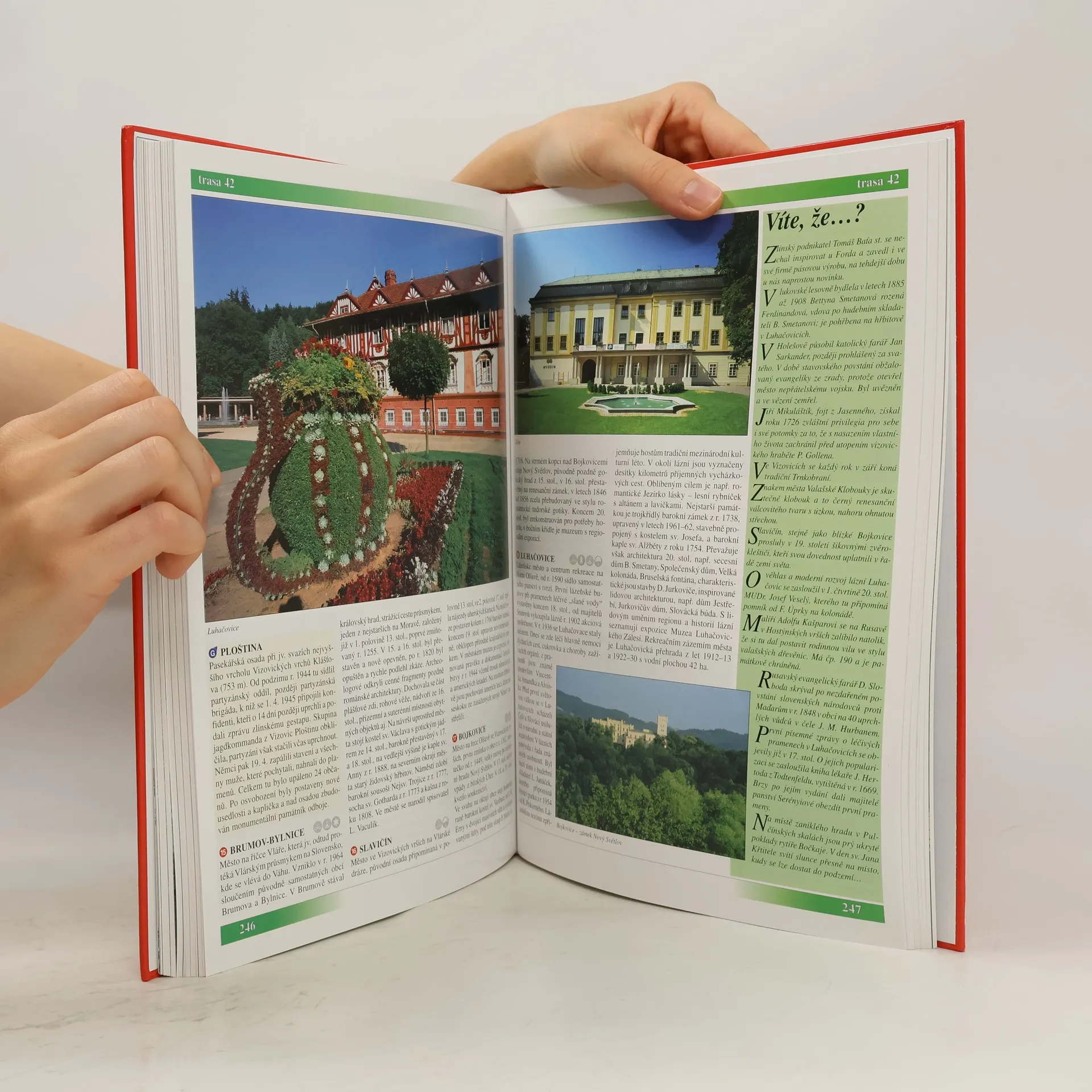 52 nejhezčích rodinných výletů autem více než 1000 hlavních cílů památky UNESCO národní kulturní památky městské památkové rezervace hrady, zámky, tvrze muzea a galerie kostely, kláštery, poutní místa židovské památky archeologické lokality technické památky a zajímavosti skanzeny a lidová architektura veřejnosti přístupné jeskyně rozhledny a výhledové body slavnosti, festivaly, sport, trhy zážitky pro malé i velké tipy na ubytování zoologické a botanické zahrady přírodní zajímavosti a zvláštnosti aquaparky a koupaliště golfová hřiště jízda na koni návrhy na pěší a cyklo výlety autoatlas