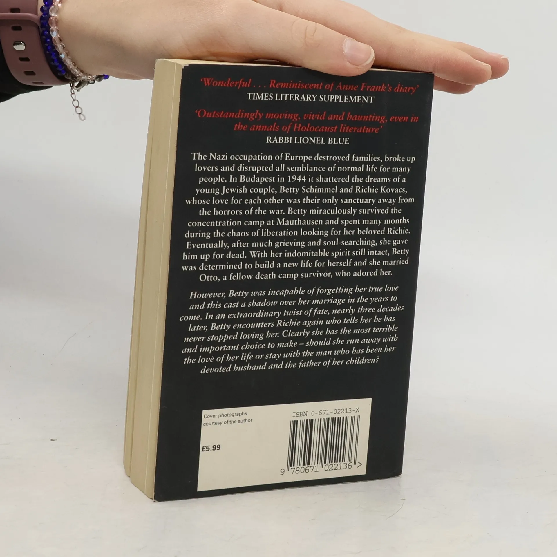"Will you love me always just as you love me now?" I asked. "Always", he promised. With these words, Betty Markowitz and Richie Kovacs pledged their hearts to each other forever. They met as children in 1939 in Budapest, and fell in love as teenagers amid the terror of a world at war, confident that their love could survive even Hitler. Separated from Richie by the Nazis in 1944, Betty vowed she would find him. But it would be thirty years and a lifetime of pain, love, loss, and joy before she did.