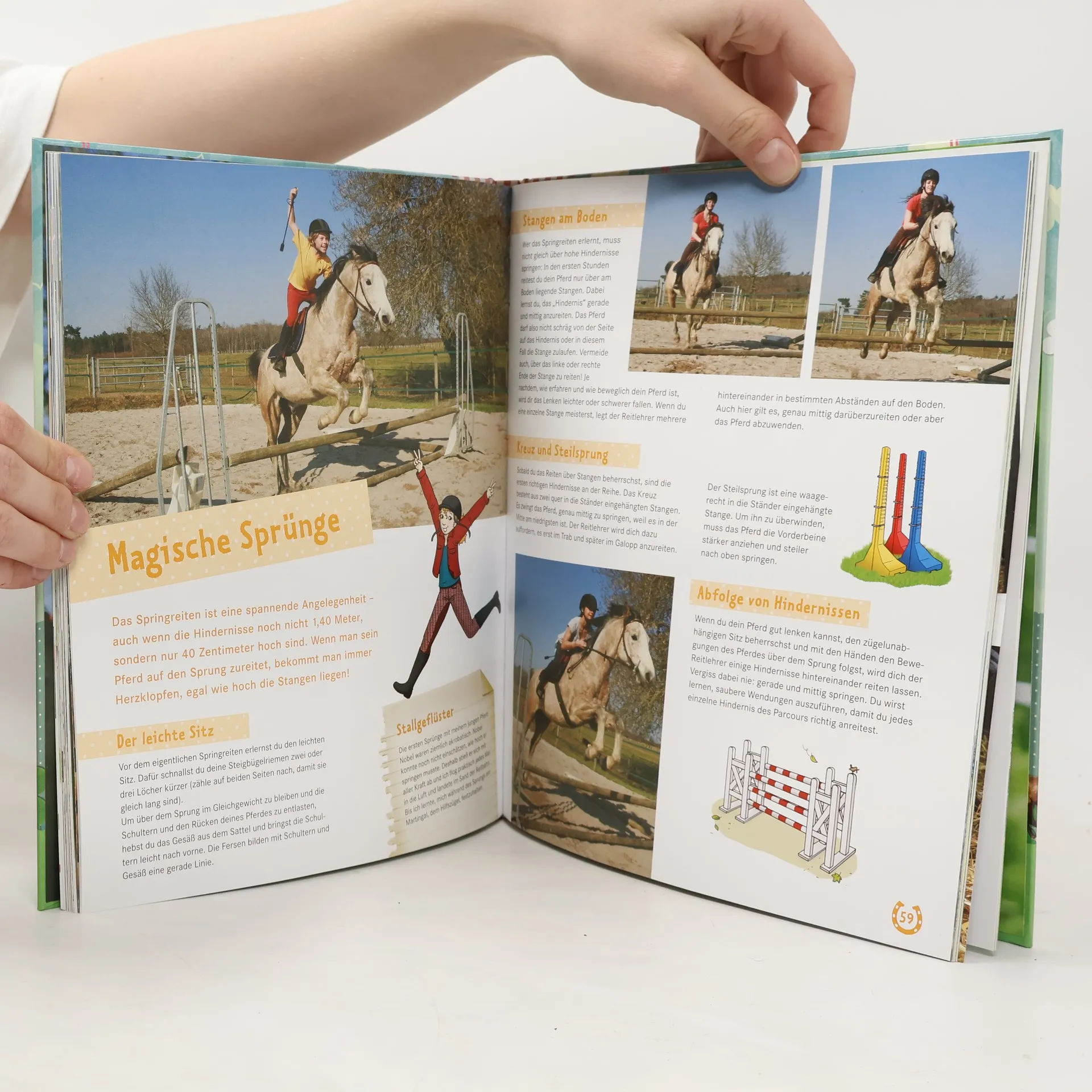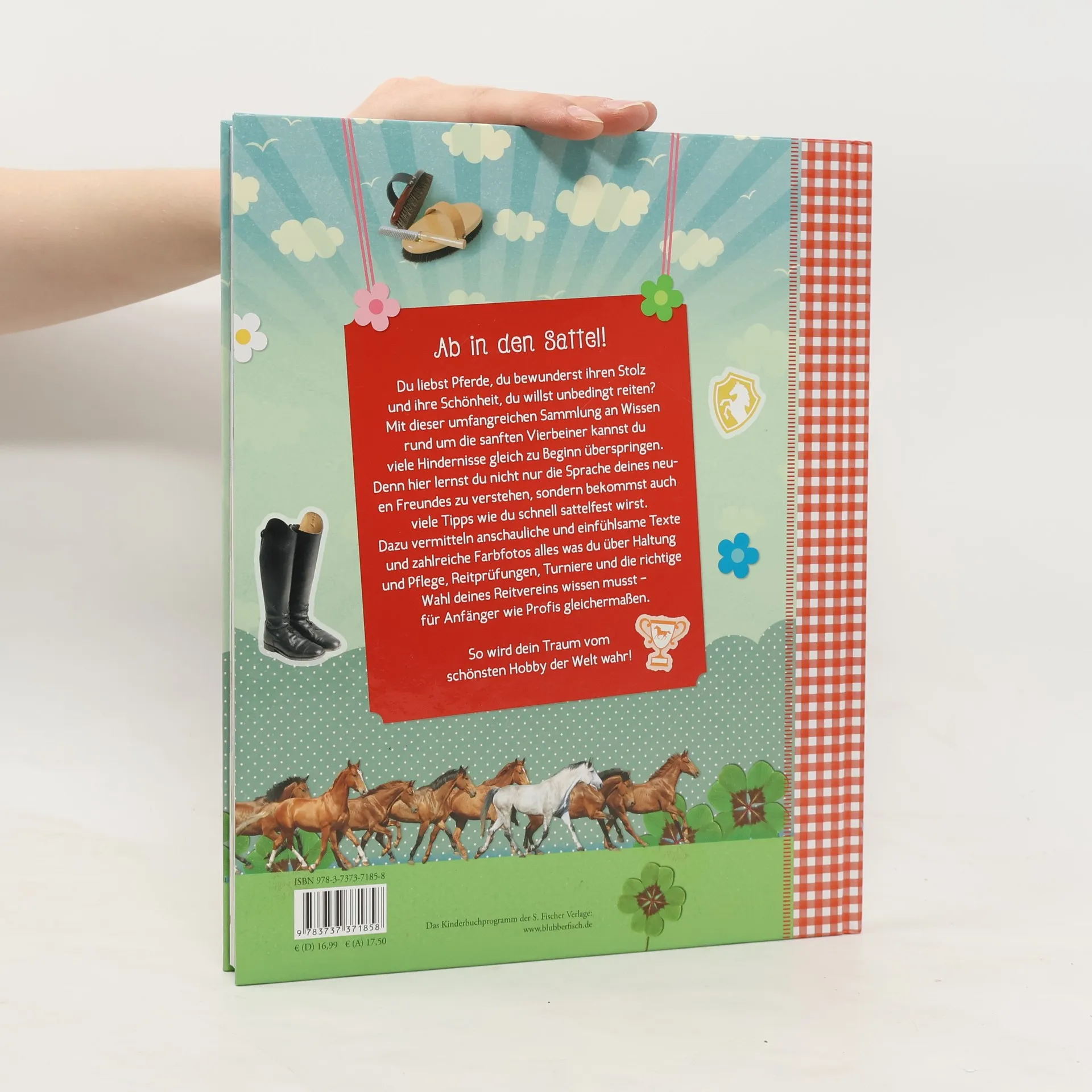 Das Standardwerk für junge Reiter und Pferdefans Das Glück der Erde, liegt auf dem Rücken der Pferde – und auf dem Rücken dieses Buches! Wie finde ich den richtigen Reitstall? Was ist der Unterschied zwischen Zaumzeug und Halfter? Welche Ausrüstung brauche ich? Fragen, die sich viele junge Reiter vor ihrer ersten Reitstunde stellen. Ausführliche und fundierte Informationen rund um die Themen Pferde, Reiten und Pflege sowie Grundlegendes zu den Reitabzeichen 10 bis 6 (ehemals Kleines und Großes Hufeisen) helfen Anfängern und fortgeschrittenen Reitern beim Umgang mit den geliebten Vierbeinern. In farbigen Bildern und Schritt für Schritt werden die artgerechte Haltung und Pflege ebenso erklärt, wie die Verantwortung für ein eigenes Pferd. Bei der Verbesserung der eigenen Reittechnik helfen Reittipps. Eine Übersicht aller Pferdesportarten wie Voltigieren, Dressur, Spring- oder Orientierungsreiten, hilft bei der Entscheidung für die eigene Ausbildung. All das und noch viel mehr finden kleine und große Pferdefans in diesem Buch!