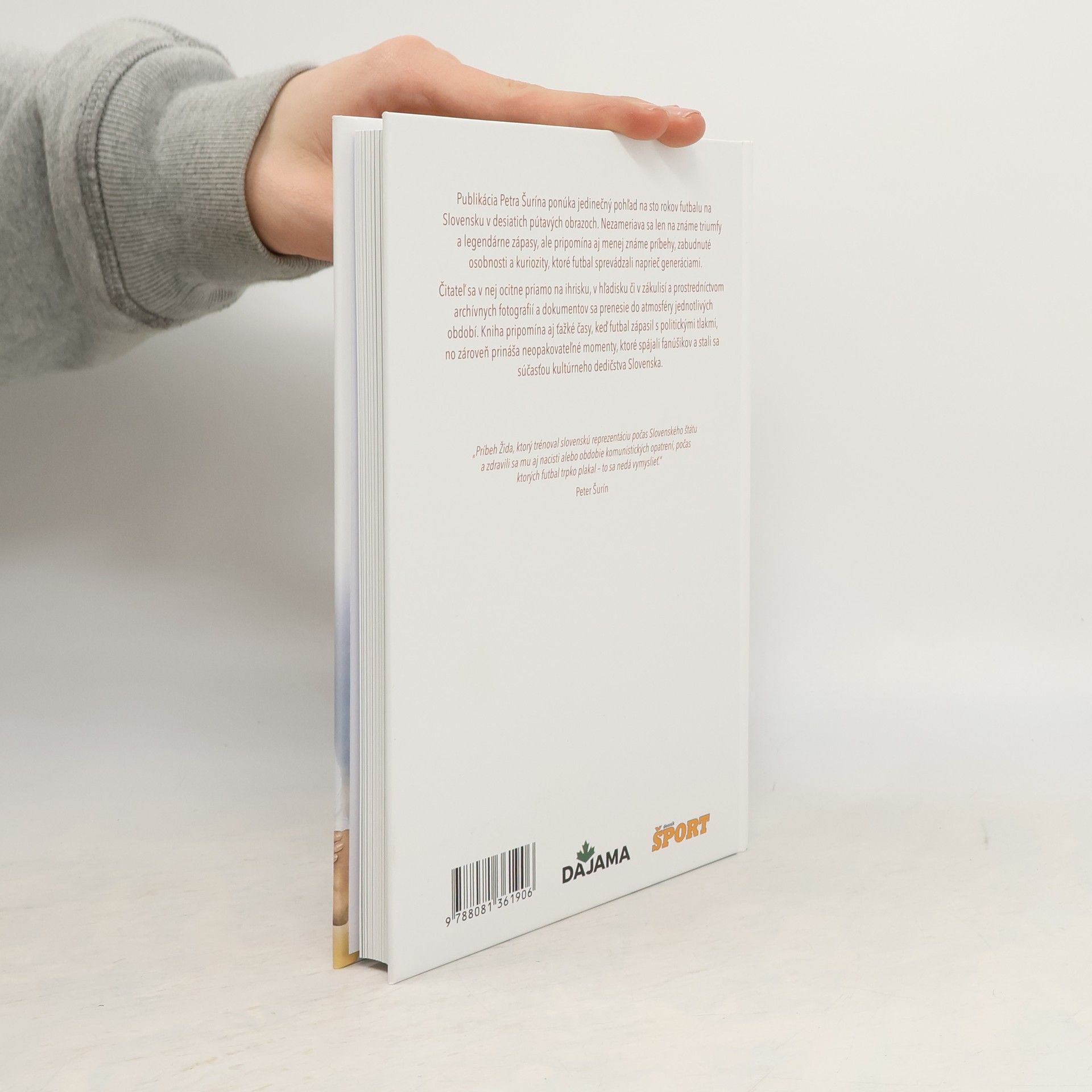 Kniha je jednou z troch častí trilógie Futbalové Slovensko a pozýva čitateľa objavovať populárnym spôsobom slovenské dejiny tohto výnimočného športu. Sledujte slovenský futbal v priebehu storočia, zachytený v desiatich dejstvách od jeho zrodu až po súčasnosť. Objavíte slávne zápasy, klubové úspechy aj momenty, ktoré sa zapísali do pamäti fanúšikov. Archívne fotografie, dobové materiály a dokumentárne poznámky oživujú jednotlivé udalosti a prinášajú živý obraz futbalu v čase. Kniha predstavuje slovenský futbal naprieč desaťročiami, od jeho historických začiatkov až po modernú éru. Sleduje dôležité futbalové momenty, kluby, zápasy a osobnosti, ktoré formovali futbal na Slovensku. Autor sa snaží zachytiť nielen známe udalosti, ale aj zabudnuté alebo menej medializované príbehy, ktoré sú súčasťou bohatej histórie slovenského futbalu. Kniha ponúka ucelený pohľad na fenomén futbalu, jeho všemožné farby, vône a chute, a zaujme každého milovníka športu.