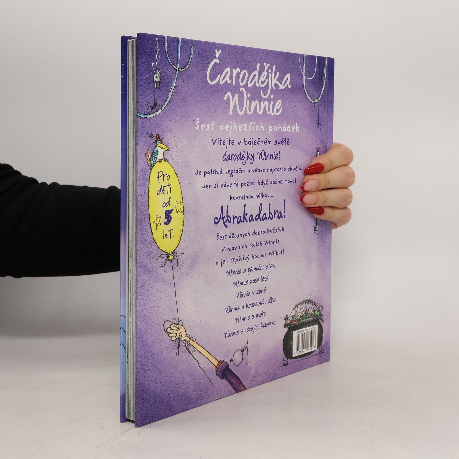 Čarodějnice Winnie hospodaří ve svém domečku spolu s kocourem Wilburem, a jak si tam tak spolu žijí, zažívají různá nečekaná dobrodružství. Ne vždycky všechno ovšem dopadne tak, jak si představují, protože neberou v úvahu úplně všechny důsledky jediného kouzelného slovíčka abrakadabra! Naštěstí vždycky všechno dobře dopadne, i když se v zahradě zničehonic vynoří drak nebo když se úplně zjančí létající koberec. Šest veselých příběhů o jedné z nejoblíbenějších britských pohádkových postaviček.