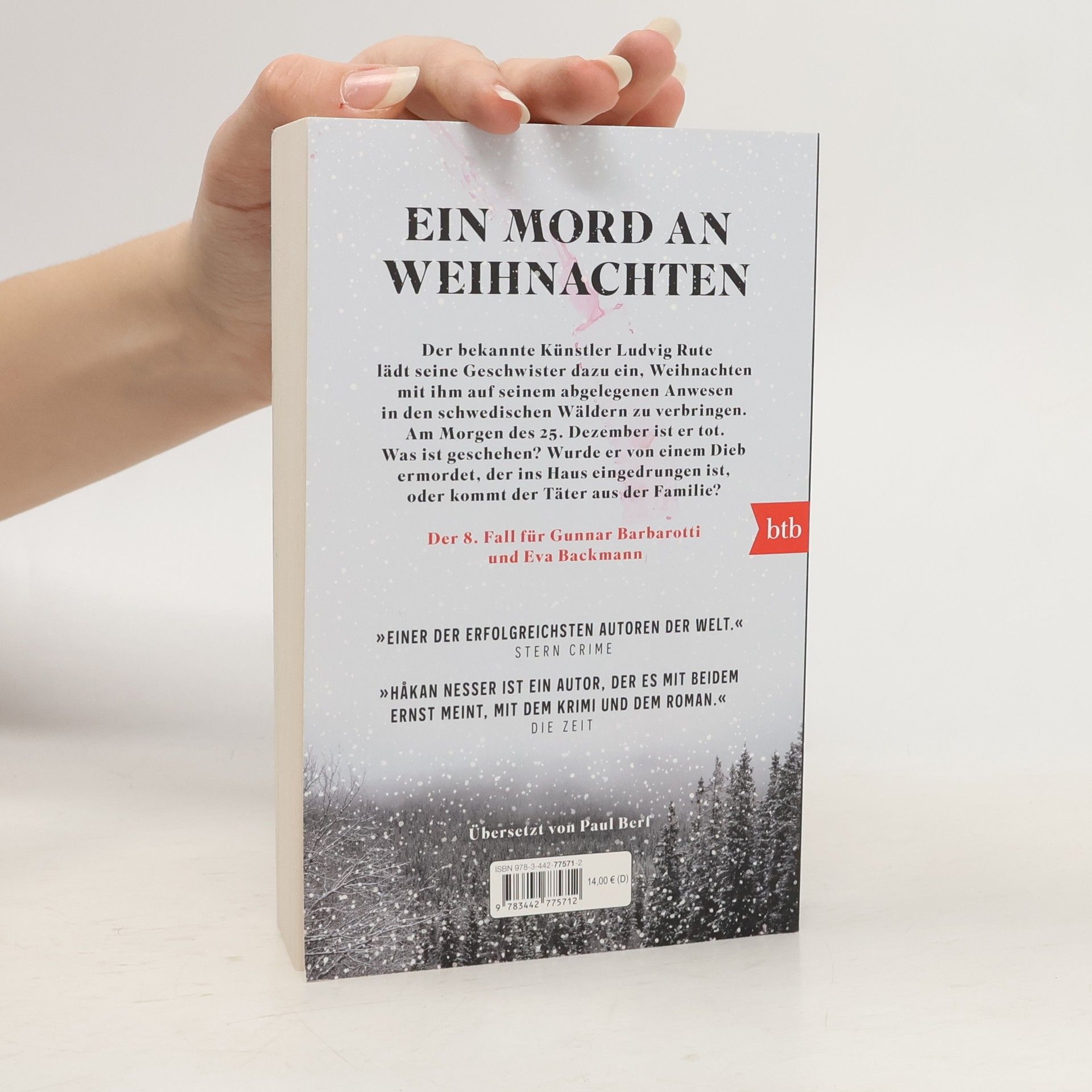 Ein Mord an Weihnachten: Der 8. Fall für Gunnar Barbarotti und Eva Backman / SPIEGEL-Bestseller Schweden, Weihnachten 2020: der bekannte Künstler Ludvig Rute lädt – den Einschränkungen der Coronapandemie zum Trotz – seine drei Geschwister samt Anhang über die Feiertage in ein abgelegenes Anwesen in der Nähe eines Waldes ein. Obwohl sie nicht wissen, was sie dort erwartet, sind sie von weit her angereist. Sie haben sich seit vielen Jahren nicht mehr gesehen, die Atmosphäre ist angespannt. Es wird nicht besser, als der Gastgeber am Morgen des 25. Dezembers tot aufgefunden wird. Bei starkem Schneefall nehmen Gunnar Barbarotti und seine Kollegin und Ehefrau Eva Backman den Fall auf, der an einen alten englischen Kriminalroman erinnert. War es ein Bilderdieb, der in das Haus eingedrungen ist, oder kommt der Täter aus der Familie?