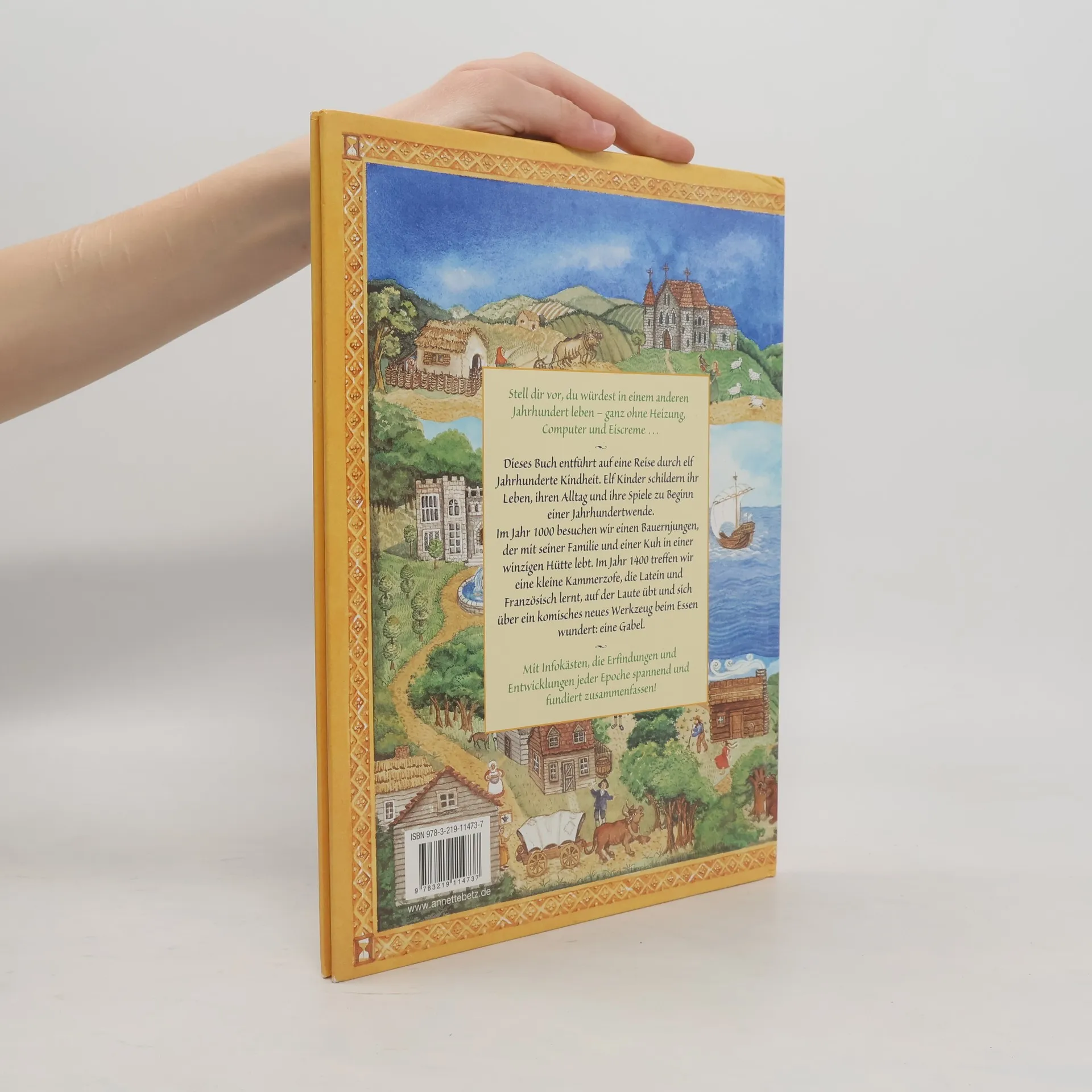Reise durch die Zeit Wie wäre es wohl, in einem anderen Jahrhundert zu leben – ganz ohne Heizung, Computer und Eiscreme? Dieses Buch entführt auf eine Reise durch elf Jahrhunderte – vom Mittelalter bis zur Neuzeit. Elf Kinder schildern jeweils ihr Leben, ihren Alltag und ihre Spiele zu je einer Jahrhundertwende.