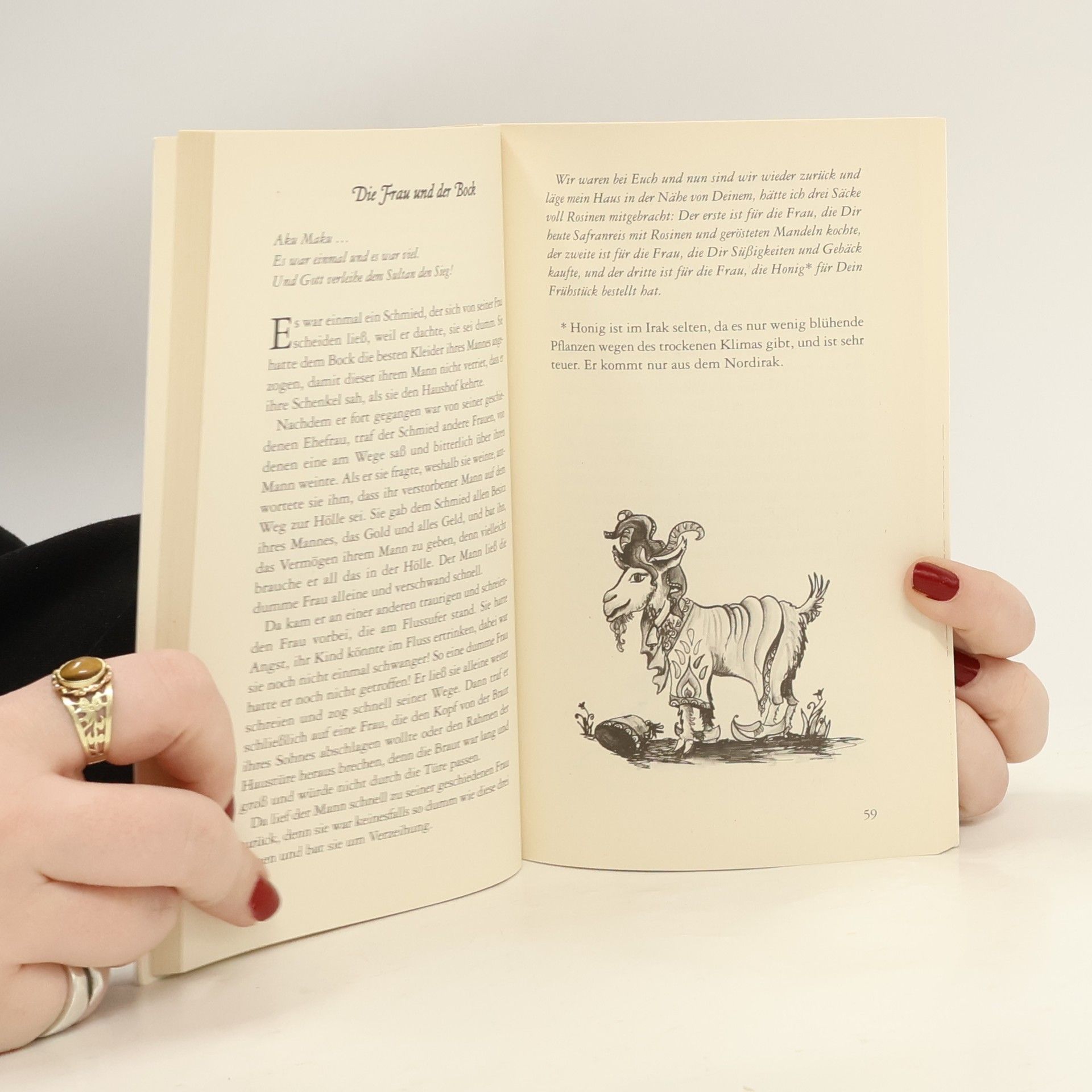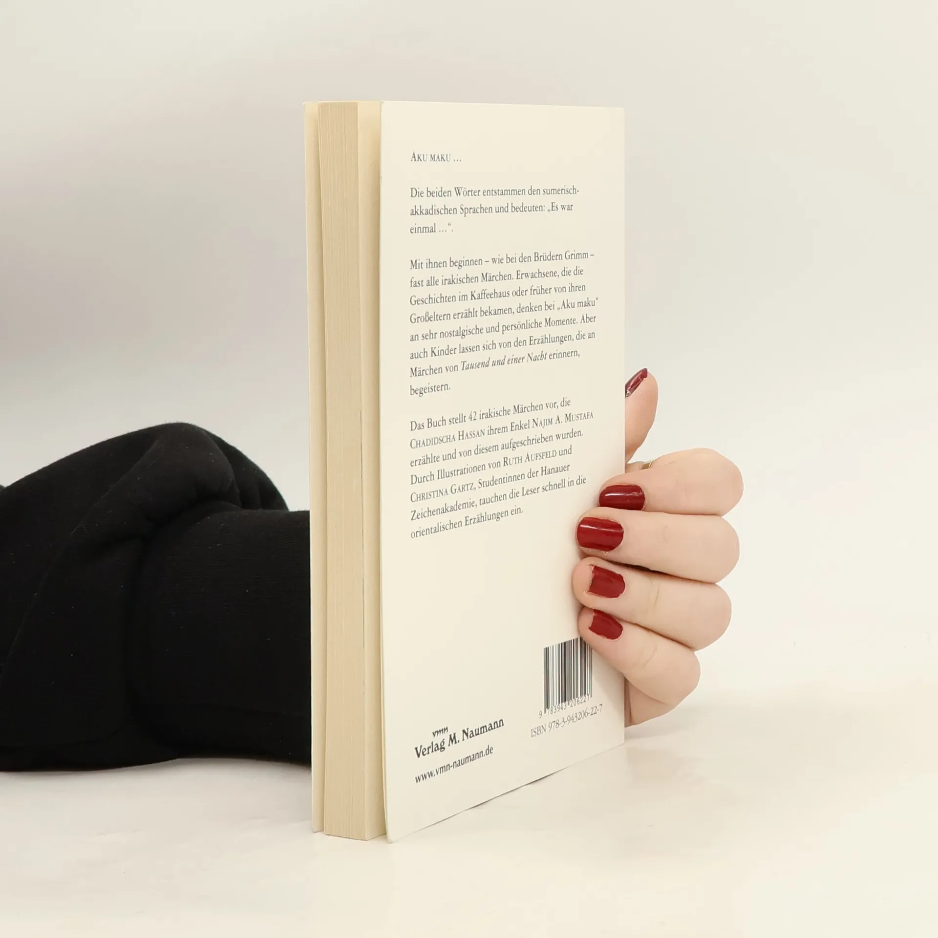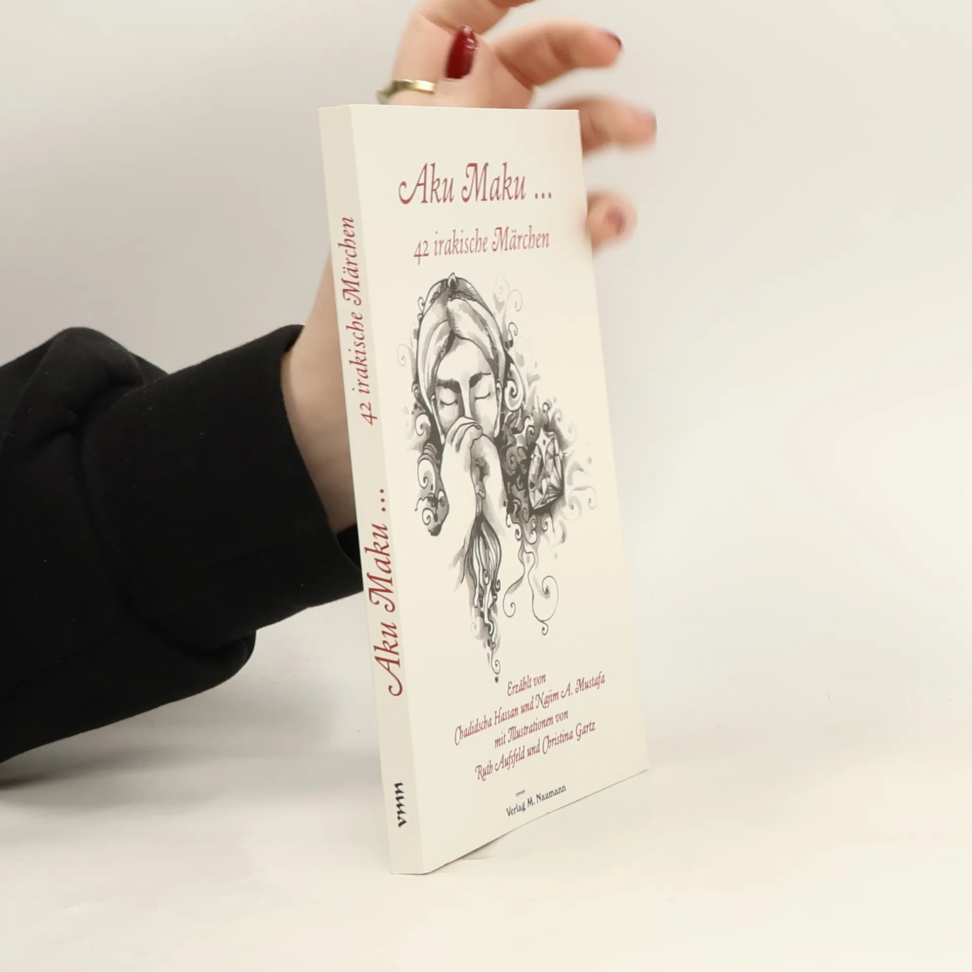 Aku maku … Die beiden Wörter entstammen den sumerisch-akkadischen Sprachen und bedeuten: „Es war einmal …“. Mit ihnen beginnen – wie bei den Brüdern Grimm – fast alle irakischen Märchen. Erwachsene, die die Geschichten im Kaffeehaus der früher von ihren Großeltern erzählt bekamen, denken bei „Aku maku“ an sehr nostalgische und persönliche Momente. Aber auch Kinder lassen sich von den Erzählungen, die an Märchen von Tausend und einer Nacht erinnern, begeistern. Das Buch stellt 42 irakische Märchen vor, die Chadidscha Hassan ihrem Enkel Najim A. Mustafa erzählte und von diesem aufgeschrieben wurden. Durch Illustrationen von Ruth Aufsfeld und Christina Gartz, Studentinnen der Hanauer Zeichenakademie, tauchen die Leser schnell in die orientalischen Erzählungen ein.