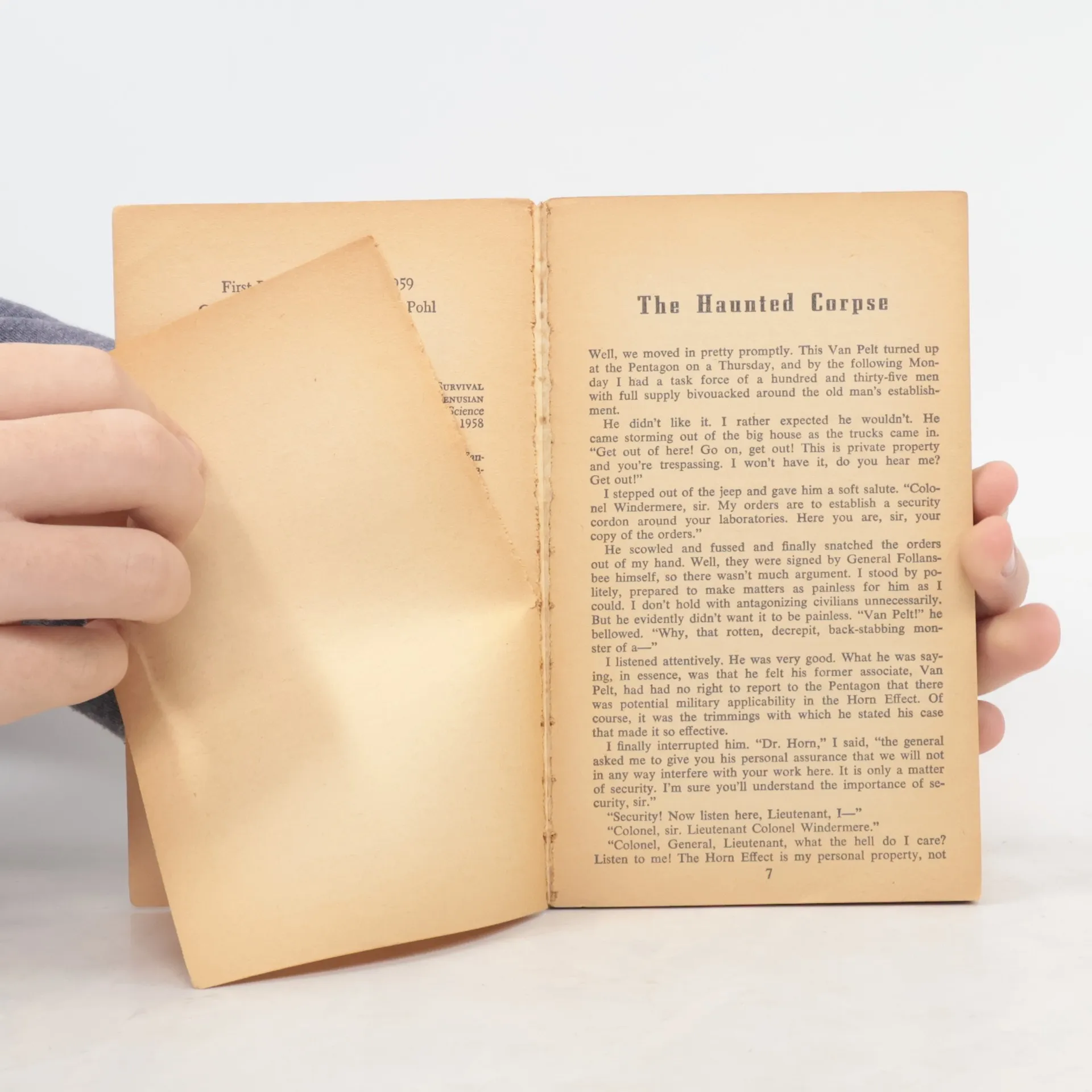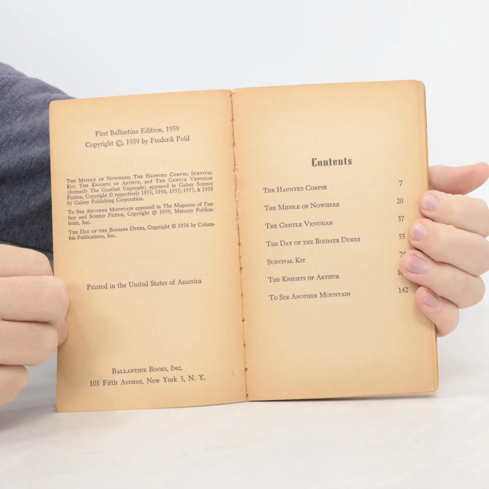 Ballantine Books, 1959. Paperback, 1st printing with cover code #325K. Collection of stories from a science fiction Grand Master! “The Haunted Corpse” (1957); “The Middle of Nowhere” (1955); “The Gentle Venusian” (1958); “The Day of the Boomer Dukes” (1956); “Survival Kit” (1957); “The Knights of Arthur” (1958); “To See Another Mountain” (1959).