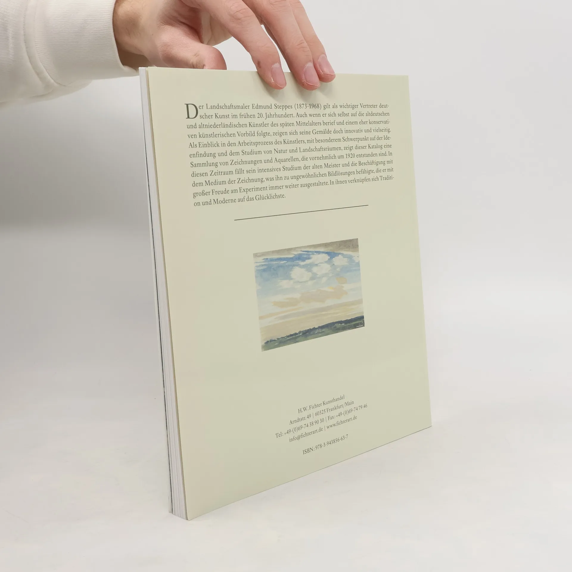 Der Landschaftsmaler Edmund Steppes (1873-1968) gilt als wichtiger Vertreter deutscher Kunst im frühen 20. Jahrhundert. Auch wenn er sich selbst auf die altdeutschen und altniederländischen Künstler des späten Mittelalters berief und einem eher konservativen künstlerischen Vorbild folgte, zeigen sich seine Gemälde doch innovativ und vielseitig. Als Einblick in den Arbeitsprozess des Künstlers, mit besonderem Schwerpunkt auf der Ideenfindung und dem Studium von Natur und Landschaftsräumen, zeigt dieser Katalog eine Sammlung von Zeichnungen und Aquarellen, die vornehmlich um 1920 entstanden sind. In diesen Zeitraum fällt sein intensives Studium der alten Meister und die Beschäftigung mit dem Medium der Zeichnung, was ihn zu ungewöhnlichen Bildlösungen befähigte, die er mit großer Freude am Experiment immer weiter ausgestaltete. In ihnen verknüpfen sich Tradition und Moderne auf das Glücklichste. Studium der alten Meister beschäftigte und das Medium der Zeichnung mit großer Freude am Experiment für sich entdeckte.