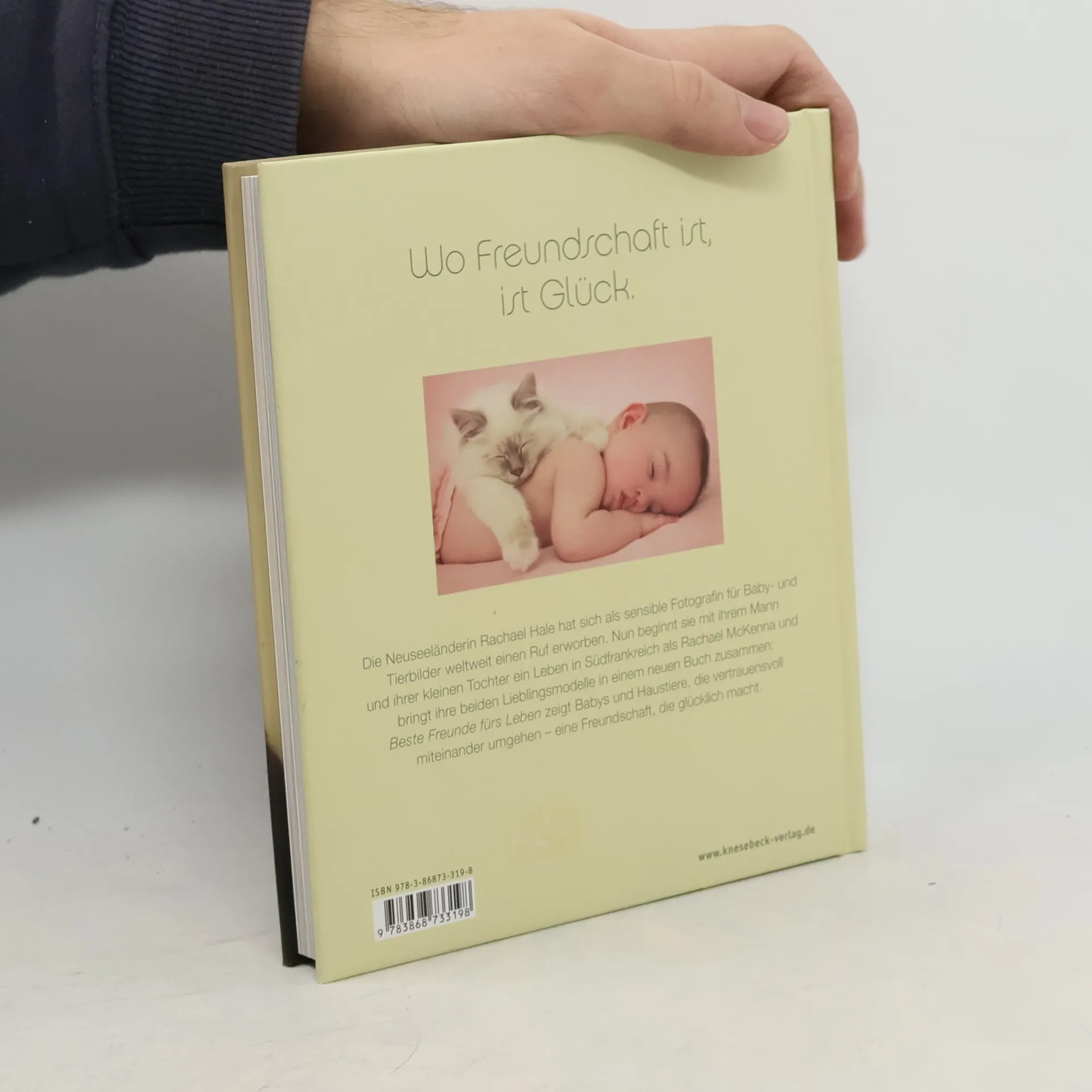 Die Bestsellerautorin Rachael McKenna (geb. Rachael Hale) ist als sensible Fotografin für Baby- und Tierbilder bekannt geworden. Nach rund 3 Millionen verkauften Büchern weltweit bringt sie nun ihre beiden Lieblingsmodelle in einem neuen Band zusammen: Beste Freunde fürs Leben zeigt Babys und Haustiere, die miteinander spielen, schmusen und kuscheln. Eine Freundschaft, die ein Leben lang glücklich macht, eingefangen in Bildern voller Zauber und Sensibilität.