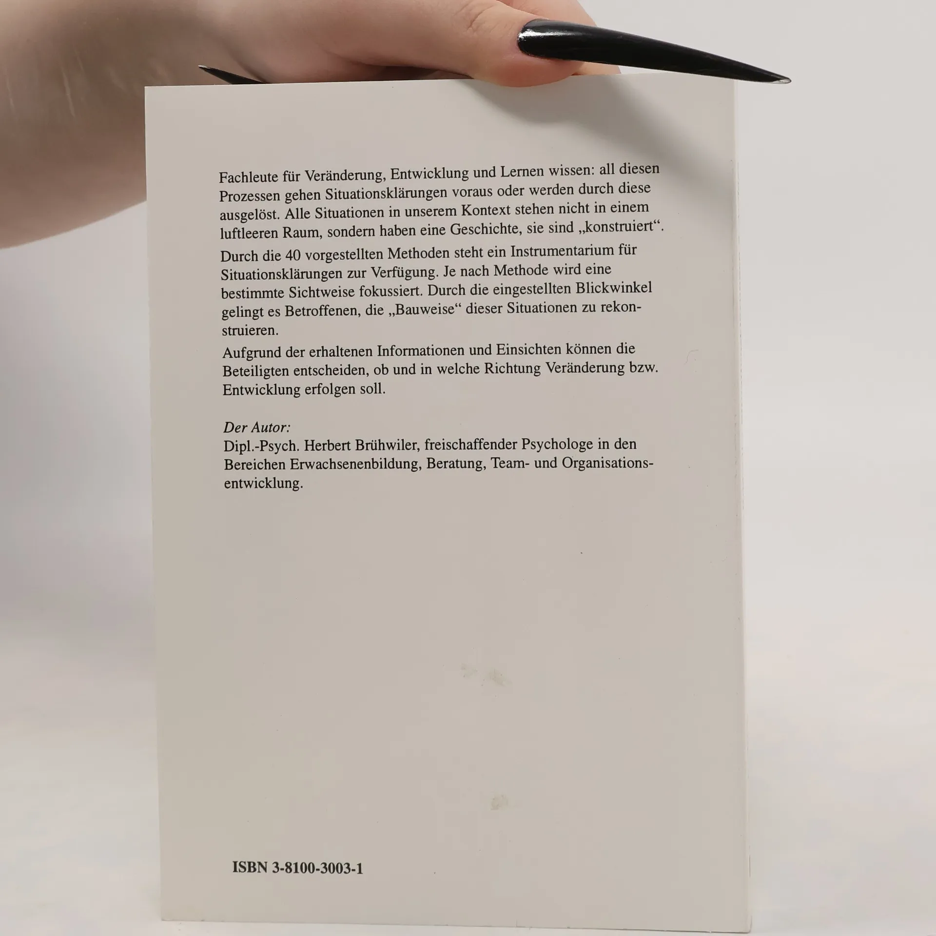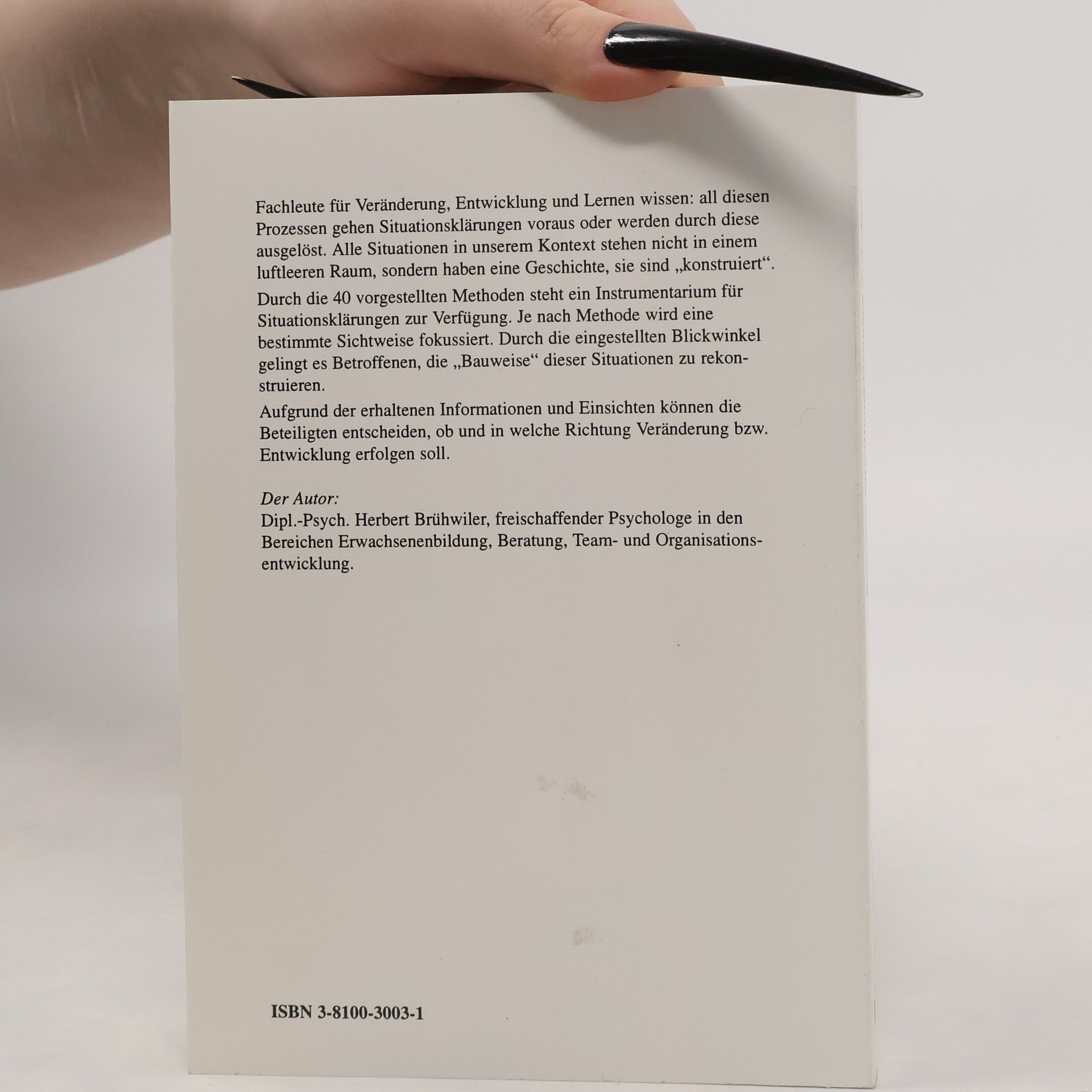 Fachleute fur Veranderung, Entwicklung und Lernen wissen: all diesen Prozessen gehen Situationsklarungen voraus oder werden durch diese ausgelost. Alle Situationen in unserem Kontext stehen nicht in einem luftleeren Raum, sondern haben eine Geschichte, sie sind "konstruiert." Durch die 40 vorgestellten Methoden steht ein Instrumentarium fur Situationsklarungen zur Verfugung. Je nach Methode wird eine bestimmte Sichtweise fokussiert. durch die eingestellten Blickwinkel gelingt es Betroffenen, die "Bauweise" dieser Situationen zu rekonstruieren. Aufgrund der erhaltenen Informationen und Einsichten konnen die Beteiligten entscheiden, ob und in welche Richtung Veranderung bzw. Entwicklung erfolgen soll.
