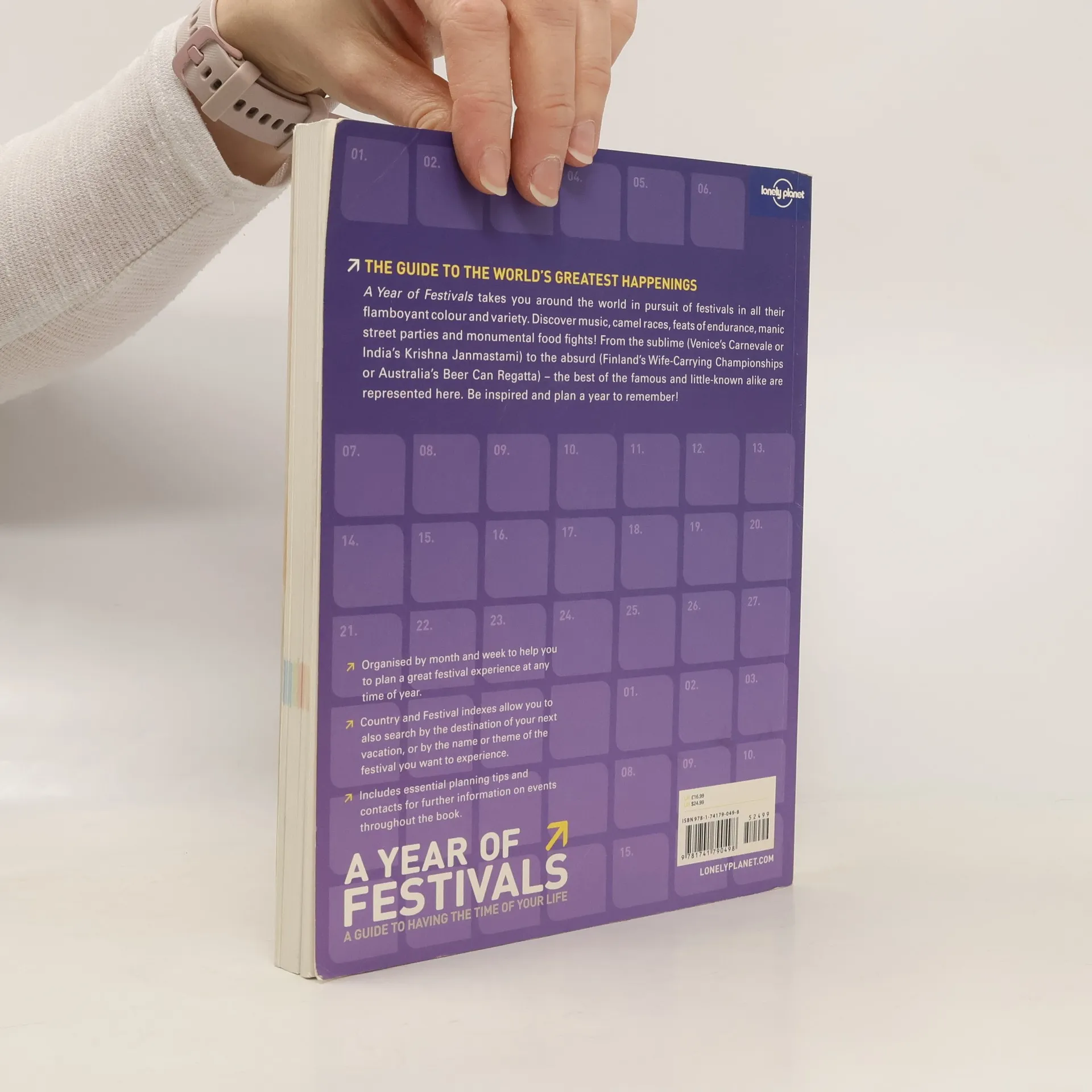 The Guide to the World's Greatest HappeningsA Year of Festivals takes you around the world in pursuit of festivals in all their flamboyant color and variety. Discover music, camel races, feats of endurance, manic street parties and monumental food fights! From the sublime (Venice's Carnevale or India's Krishna Janmastami) to the absurd (Finland's Wife-Carrying Championships or Australia's Beer Can Regatta) - the best of the famous and little-known alike are represented here. Be inspired and plan a year to remember!Organized by month and week to help you to plan a great festival experience at any time of year.Country and Festival indexes allow you to also search by the destination of your next vacation, or by the name or theme of the festival you want to experience.Includes essential planning tips and contacts for further information on events throughout the book.