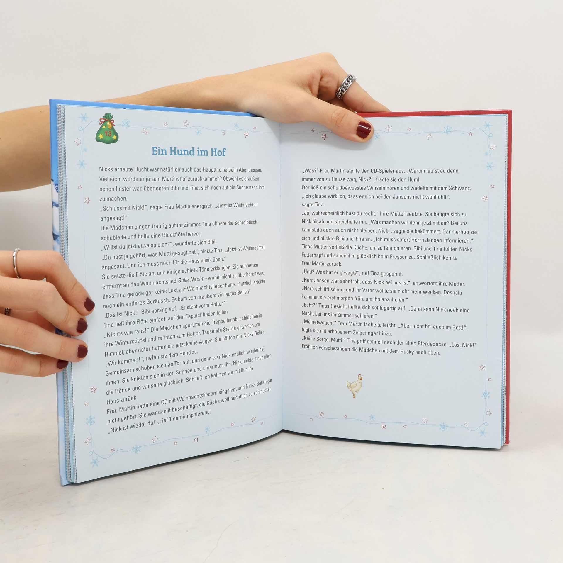 Weihnachtswunder auf dem Martinshof – ein pferdestarkes Abenteuer mit Bibi und Tina! Bibi und Tina finden während der Feiertage einen geheimnisvollen Husky im Falkensteiner Forst. Die Freundinnen nehmen sich des verlorenen Tieres an und beginnen die Suche nach seinem Besitzer. Dieses Buch, basierend auf dem beliebten Hörspiel, lädt zu einem herzerwärmenden Weihnachtsabenteuer ein, verpackt in 24 Kapiteln voller Freundschaft und Spannung. Jedes Kapitel versteckt sich hinter perforierten Seiten - sodass täglich ein neues Türchen der Geschichte geöffnet werden kann. Ein Adventskalender der besonderen Art für alle Pferdefans ab 5 Jahren!