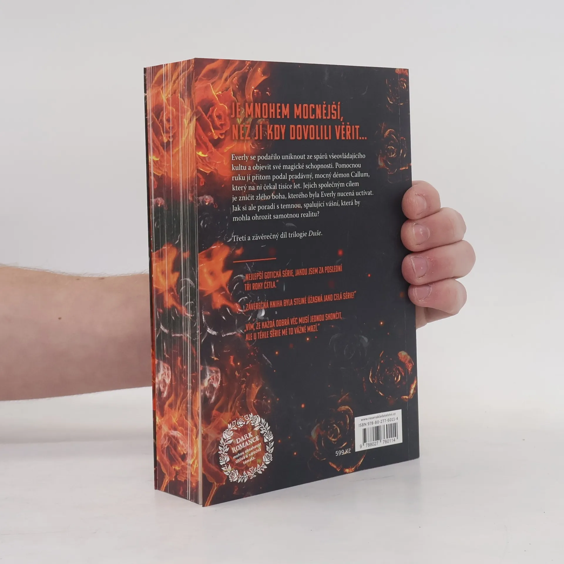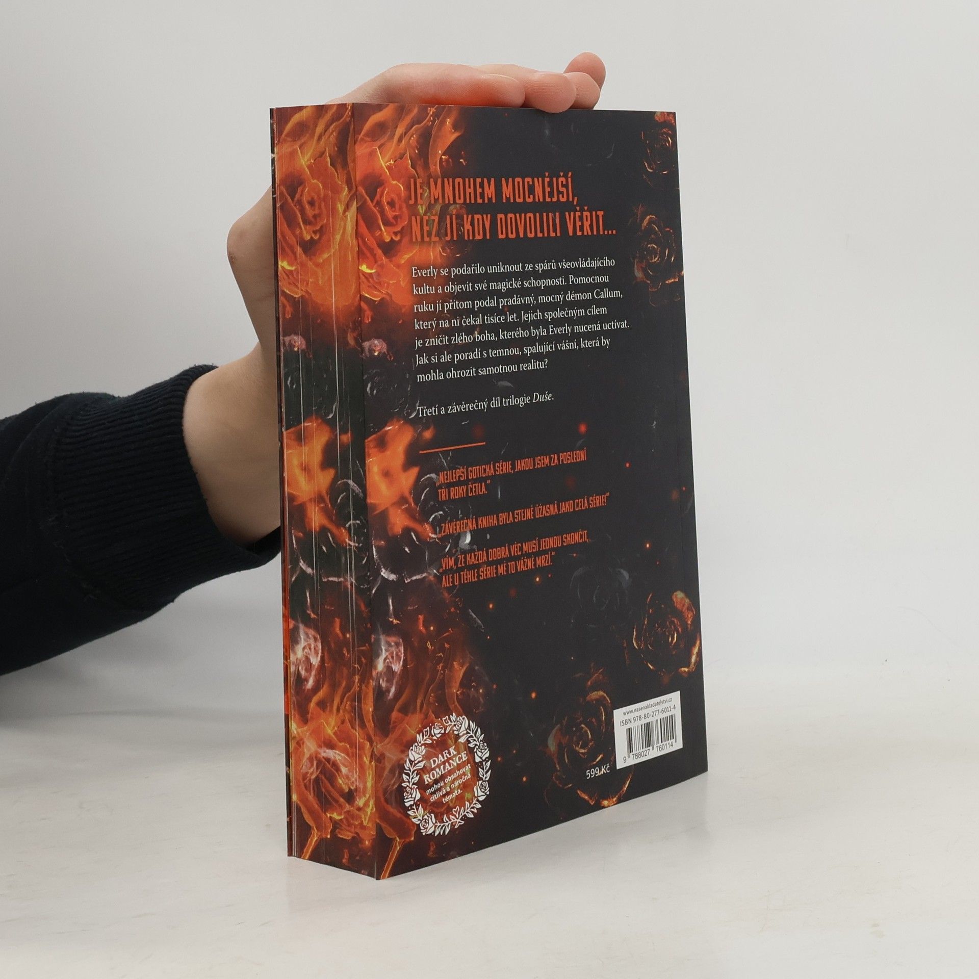 Everly vždycky věděla, že je jiná. Dcera kazatele, vychovaná v dusivém prostředí náboženského společenství, kde byla magie hříchem a její vlastní schopnosti zakázaným tajemstvím. Celý život poslouchala, potlačovala svou sílu, a přesto cítila, že v ní dřímá něco většího. Pronásledovaly ji zlé sny a vidiny, volaly ji neodbytné temné hlasy – a pak přišla chvíle, kdy se její život navždy změnil. Callum, pradávný démon, je osamělý lovec božstev odsouzený k věčnému putování světem a k boji proti silám, které by zničily celý svět. Po tisíce let čekal na svou jedinou osudovou ženu – na čarodějku, která se mu zjevovala ve snech a mohla změnit budoucnost. Když se jejich cesty konečně zkříží, není to náhoda. Je to osud. Brutální vražda, dům plný magie, tajemství ukrytá za zdmi a odhalení, která zpochybní všechno, co Everly dosud znala. Callum ví, že se v Everly skrývá moc, která by mohla zničit jeho nepřítele – a že cena za její využití bude zdrcující.