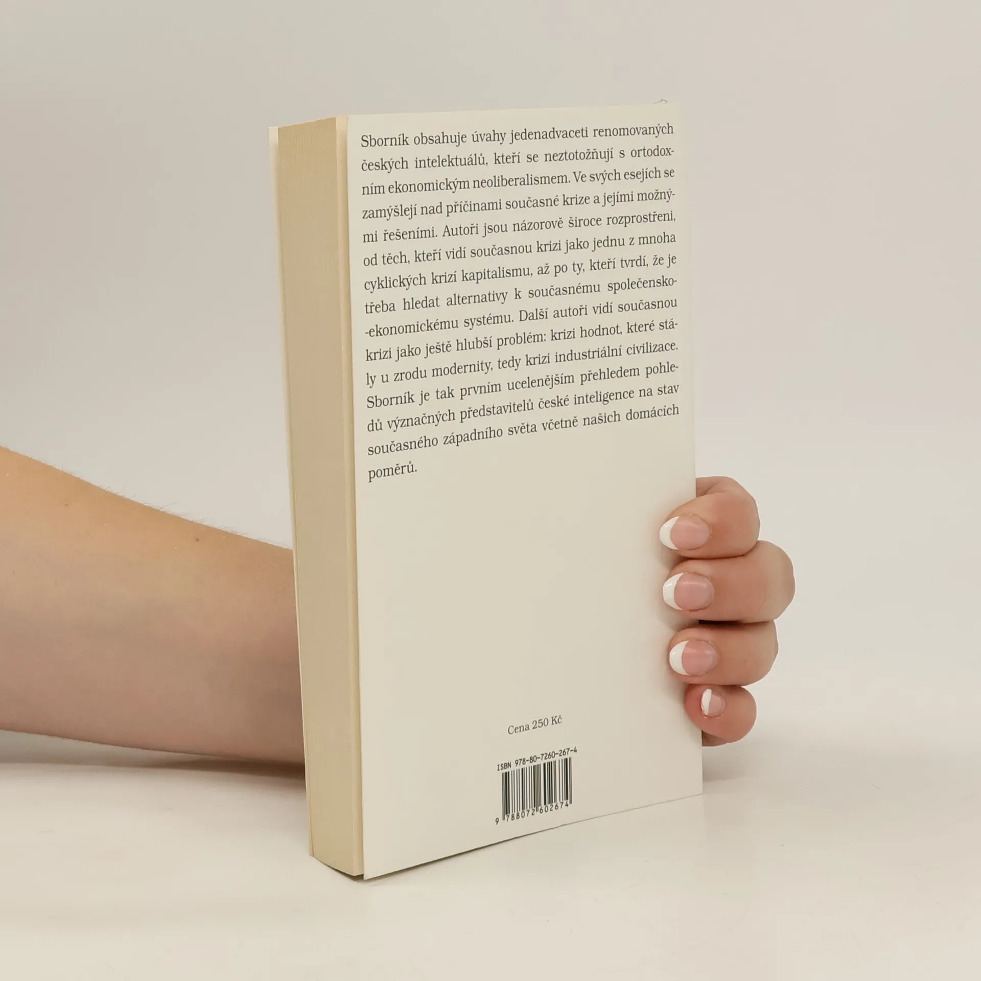 Sborník obsahuje úvahy jedenadvaceti renomovaných českých intelektuálů, kteří se neztotožňují s ortodoxním ekonomickým neoliberalismem. Ve svých esejích se zamýšlejí nad příčinami současné krize a jejími možnými řešeními. Autoři jsou názorově široce rozprostřeni, od těch, kteří vidí současnou krizi jako jednu z mnoha cyklických krizí kapitalismu, až po ty, kteří tvrdí, že je třeba hledat alternativy k současnému společensko-ekonomickému systému. Další autoři vidí současnou krizi jako ještě hlubší problém: krizi hodnot, které stály u zrodu modernity, tedy krizi industriální civilizace. Sborník je tak prvním ucelenějším přehledem pohledů význačných představitelů české inteligence na stav současného západního světa včetně našich domácích poměrů.
