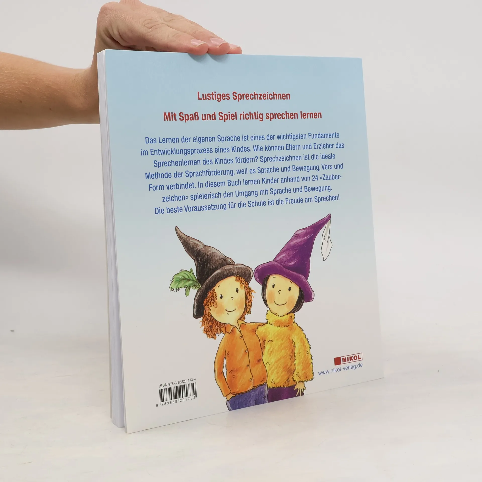 Das Lernen der eigenen Sprache ist eines der wichtigsten Fundamente im Entwicklungsprozess eines Kindes. Wie können Eltern und Erzieher das Sprechenlernen des Kindes fördern? Sprechzeichnen ist die ideale Methode der Sprachförderung, weil es Sprache und Bewegung, Vers und Form verbindet. In diesem Buch lernen Kinder anhand von 24 'Zauberzeichen' spielerisch den Umgang mit Sprache und Bewegung. Die beste Voraussetzung für die Schule ist die Freude am Sprechen!