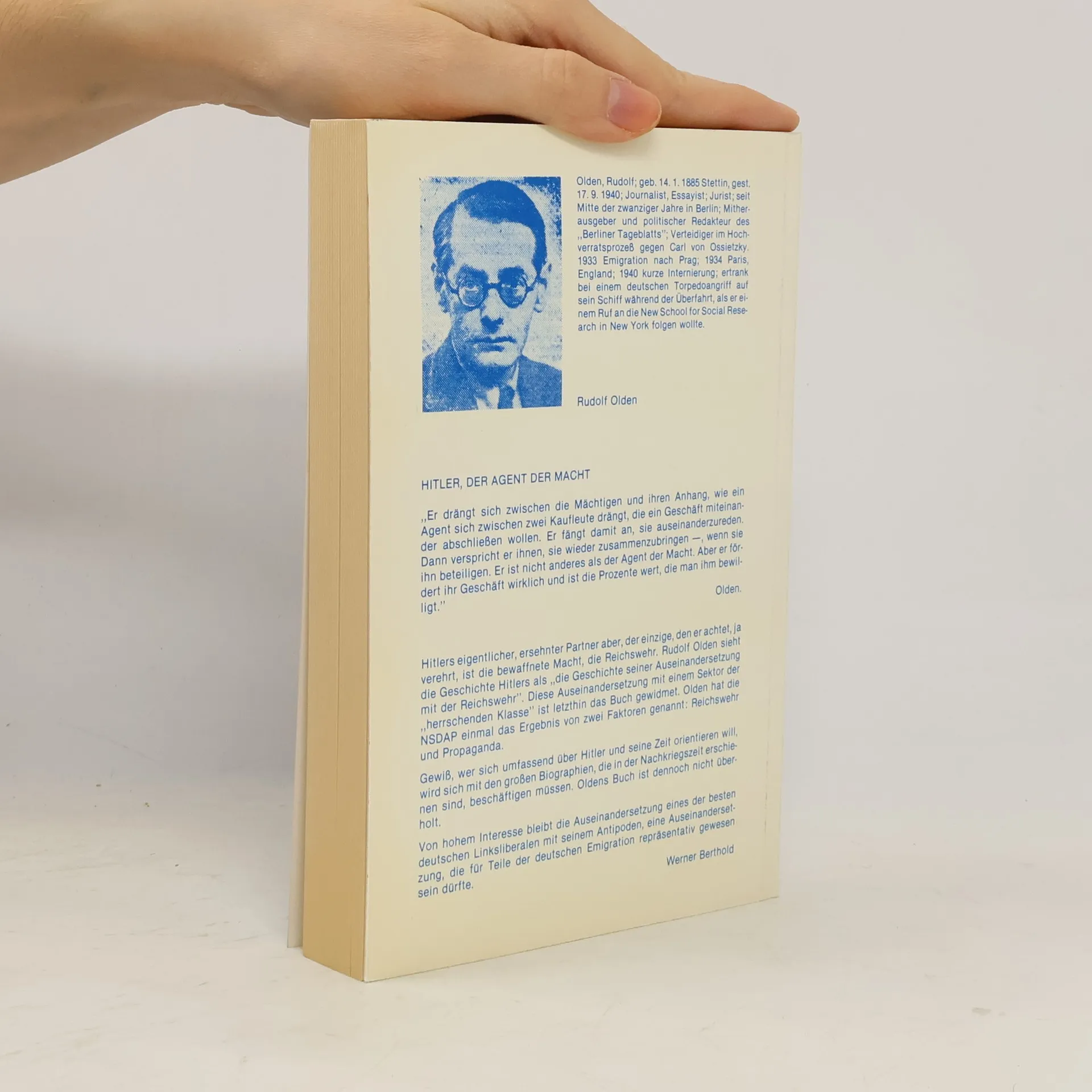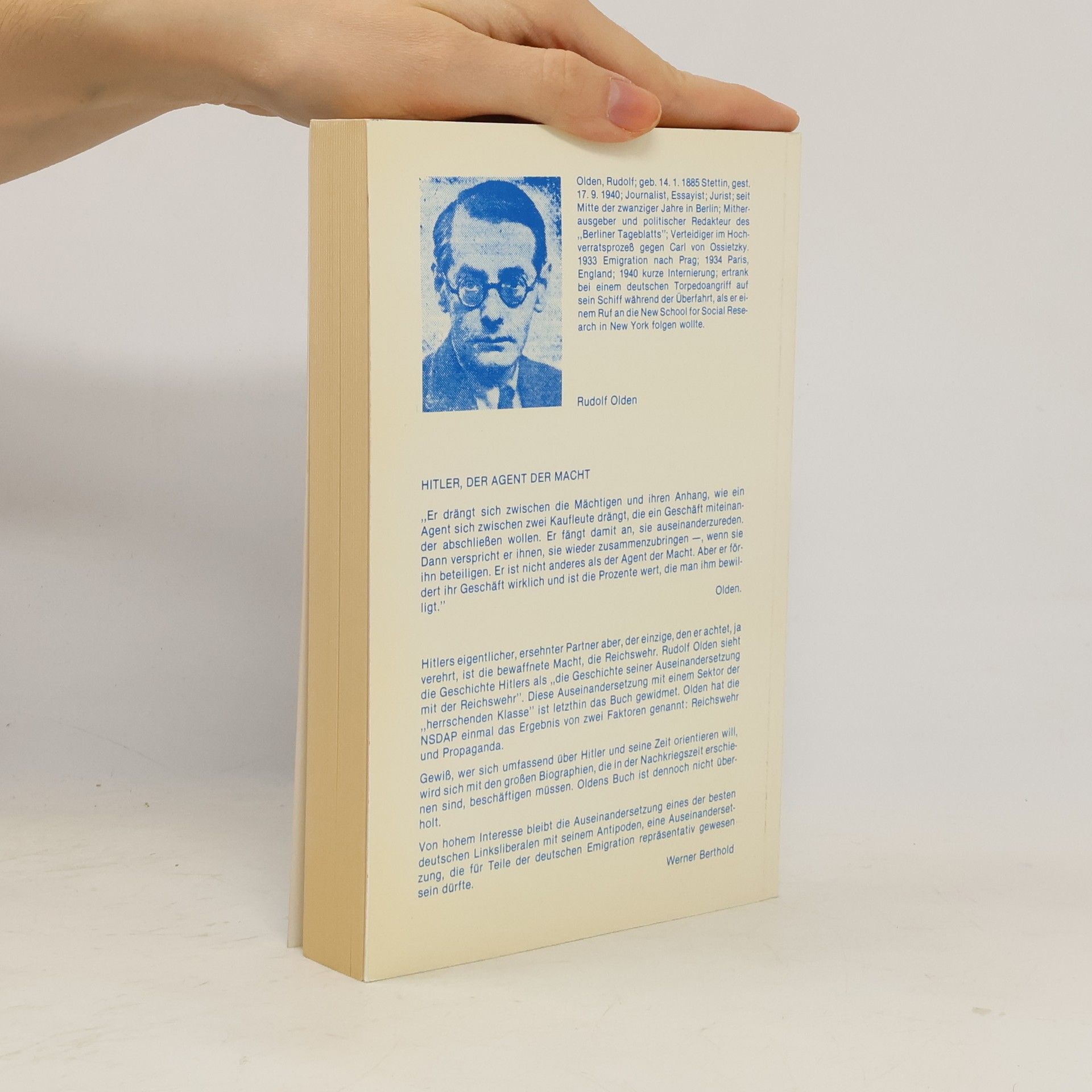 Oldens Abhandlung ist die erste im Ausland erschienene Hitler-Biographie; sie kam 1935 erstmals in Amsterdam heraus.(Dieser Text bezieht sich auf eine frühere Ausgabe.)