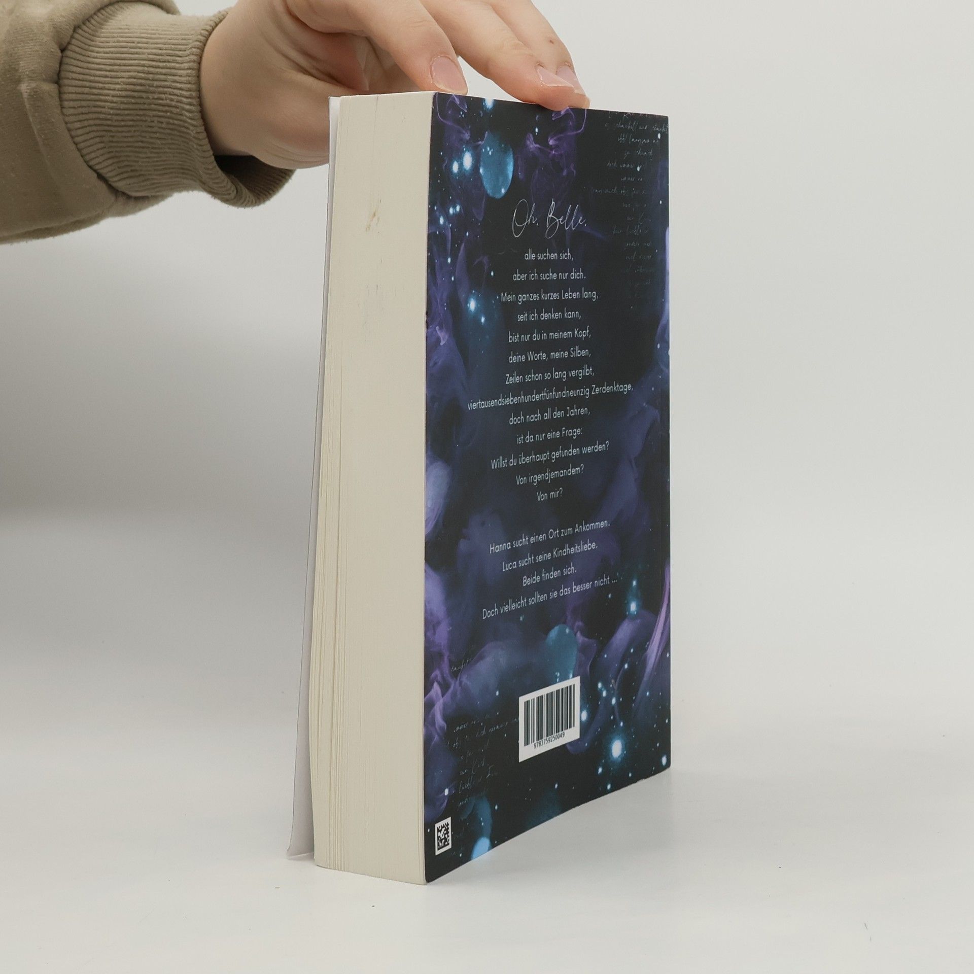 Oh, Belle, alle suchen sich, aber ich suche nur dich. Mein ganzes kurzes Leben lang, seit ich denken kann, bist nur du in meinem Kopf, deine Worte, meine Silben, Zeilen schon so lang vergilbt, viertausendsiebenhundertfünfundneunzig Zerdenktage, doch nach all den Jahren, ist da nur eine Frage: Willst du überhaupt gefunden werden? Von irgendjemandem? Von mir? Hanna sucht einen Ort zum Ankommen. Luca sucht seine Kindheitsliebe. Beide finden sich. Doch vielleicht sollten sie das besser nicht …