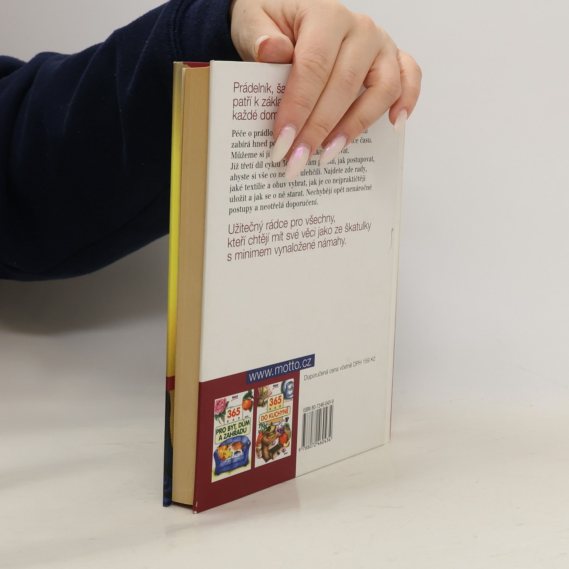 Příručka je věnována pečlivému ošetřování, čistění a úklidu oblečení, prádla, bot a oděvních doplňků. Příručka je určená všem členům rodiny. Poradí, jak co nejlépe vyprat, vyžehlit, vyčistit a uložit šatstvo, lůžkoviny, bytový textil, boty a doplňky. Jednotlivé stručné rady k tématu jsou číslované a dají se jednoduše vyhledat v rejstříku. Mnohá doporučení jsou všeobecně známá, v každém případě se ale v příručce dá najít něco nového, co nám ulehčí tuto každodenní povinnost.