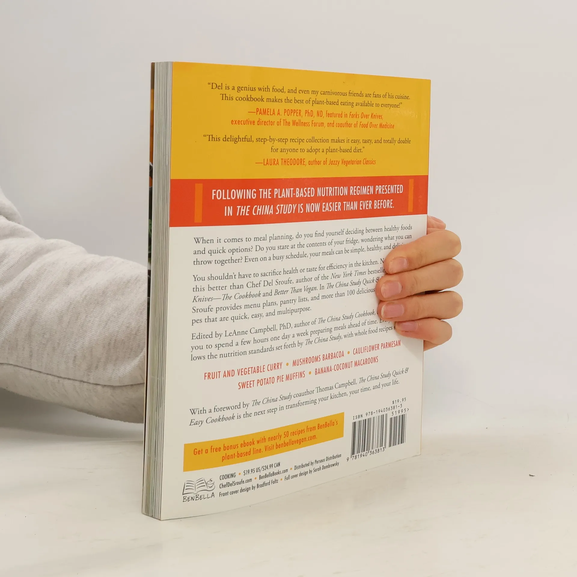 Following the plant-based nutrition regimen presented in The China Study is now easier than ever before. When it comes to meal planning, do you find yourself deciding between healthy foods and quick options? Do you stare at the contents of your fridge, wondering what you can easily throw together? Even on a busy schedule, your meals can be simple, healthy, and delicious! You shouldn't have to sacrifice health or taste for efficiency in the kitchen. Nobody knows this better than Chef Del Sroufe, author of the New York Times bestseller Forks Over Knives—The Cookbook and Better Than Vegan. In The China Study Quick & Easy Cookbook, Sroufe provides menu plans, pantry lists, and more than 100 delicious plant-based recipes that are quick, easy, and multipurpose. Edited by LeAnne Campbell, author of The China Study Cookbook, this book guides you to spend a couple of hours one day a week preparing meals ahead of time. Every dish follows the nutrition standards set forth by The China Study, ensuring optimal healthful and quality eating with whole food recipes such as: • Fruit and Vegetable Curry • Mushrooms Barbacoa • Cauliflower Parmesan • Sweet Potato Pie Muffins • Banana-Coconut Macaroons With a foreword by The China Study coauthor Thomas Campbell, The China Study Quick & Easy Cookbook is the next step in transforming your kitchen, your time, and your life.