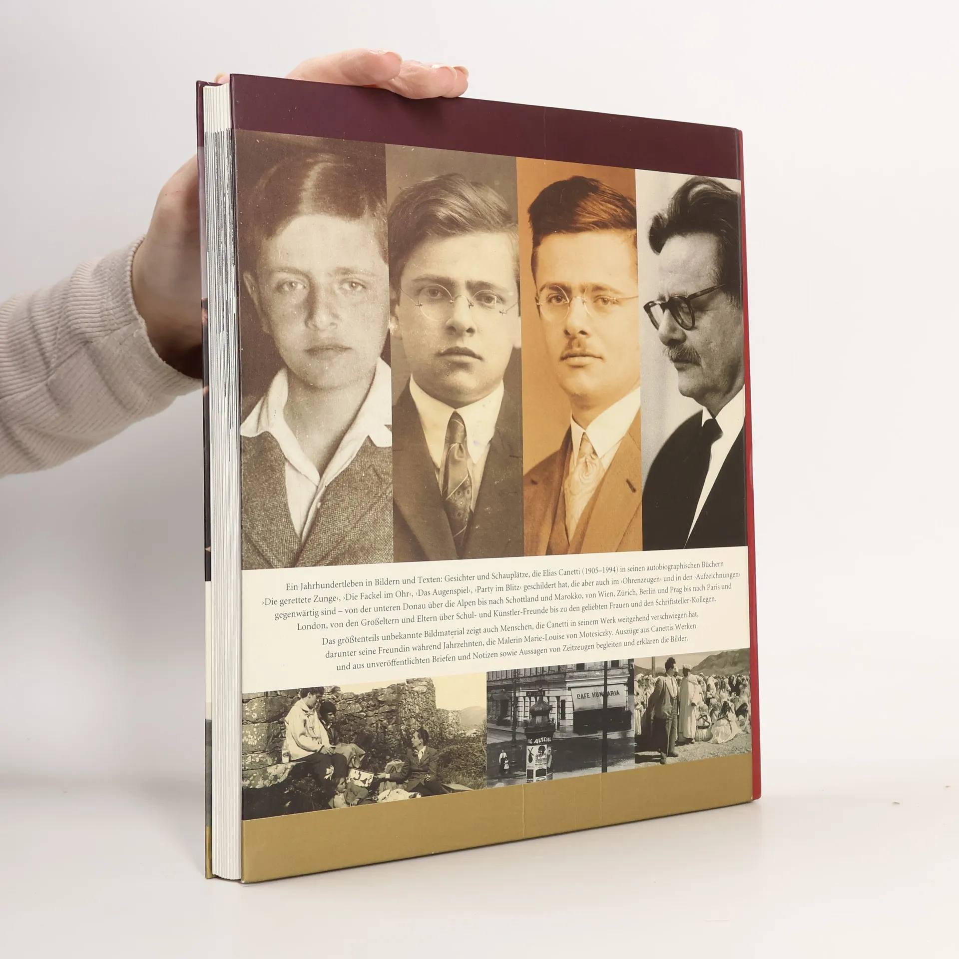 Das Bilderbuch zu einem europäischen Jahrhundertleben: Ergänzt durch Texte von und über Canetti, zeigt es Aufnahmen von Menschen, Kunstwerken und Schauplätzen, die für Elias Canetti von Bedeutung waren - familiäre Studiophotos aus der Zeit um die Jahrhundertwende, Schnappschüsse aus dem Freundeskreis, Porträts geliebter Frauen. Die umfassende Chronik größtenteils unveröffentlichter Photographien wirft Schlaglichter auf Elias Canettis Leben zwischen Intellektuellen und Künstlern, auf Orte wie Zürich, Wien, Berlin, über Marokko bis Paris und London.