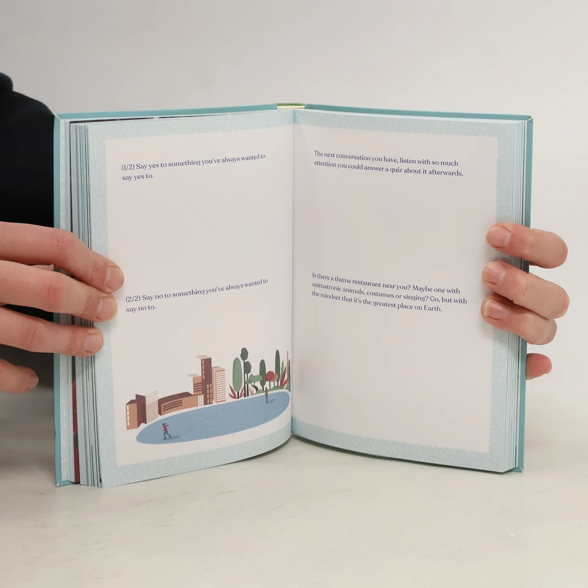 You don't need to travel far to uncover new experiences. From connecting with friends and family to appreciating art and embracing creativity, this guide shows you how to explore cultures, meet new people, and embark on daily adventures. Travel opens our eyes to new perspectives, diverse cuisines, and different cultures, enriching our lives. Yet, how often do we bring that sense of adventure into our everyday routines? This guide encourages you to tap into your creativity, inner adventurer, and community. Some activities take just a minute, like deep breathing, while others may require a day or more, such as camping indoors. Most prompts fit seamlessly into your daily schedule, typically taking between 10 minutes to an hour. Examples include: admiring street art as if it were in a gallery, watching a film from a randomly chosen country and writing a review, spending a minute truly experiencing the weather, drawing a map of your hometown, or exploring a nearby youth hostel. Other suggestions involve taking a walk with a borrowed dog, waking up early to enjoy nature sounds, learning about constellations, or reaching out to an older relative. Embrace the adventure that awaits you every day.