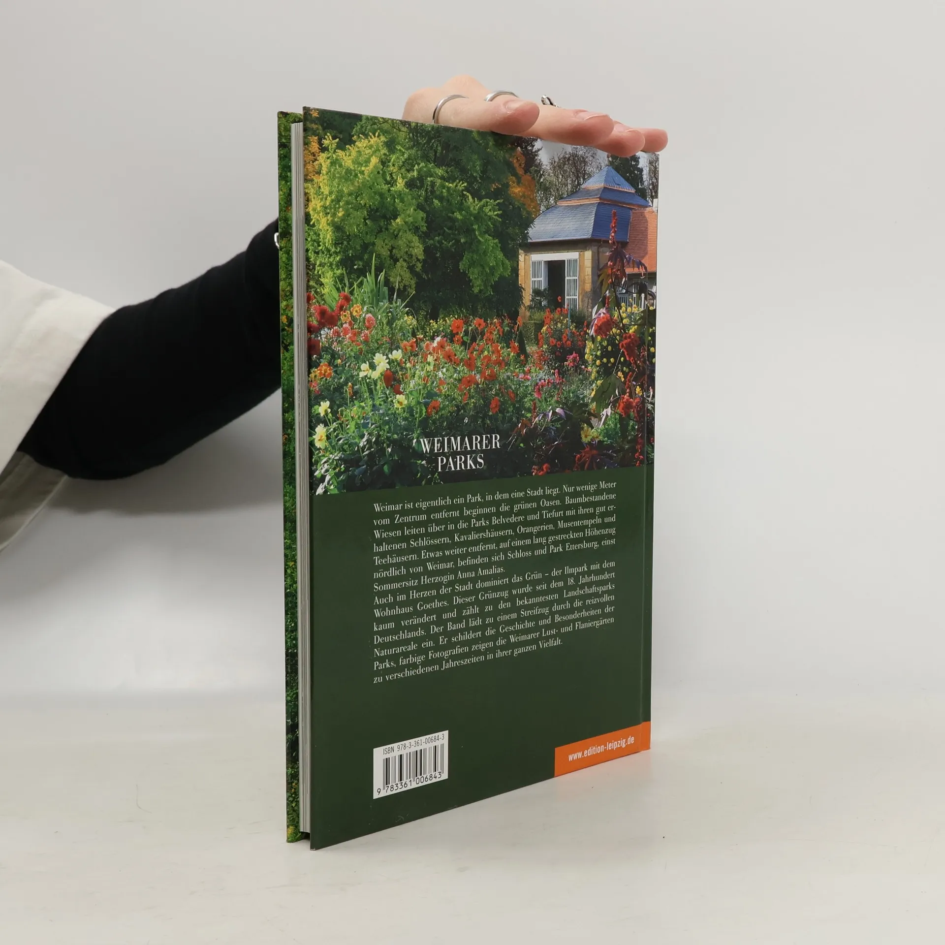 Weimar ist eigentlich ein Park, in dem eine Stadt liegt. Nur wenige Meter vom Zentrum entfernt beginnen die grünen Oasen, Wege leiten über in die Parks Belvedere und Tiefurt. Etwas weiter entfernt befindet sich der Park Ettersburg, einst Sommersitz Herzogin Anna Amalias. Auch im Herzen der Stadt dominiert das Grün – der Ilmpark mit dem Gartenhaus Goethes. Der Band animiert zu einem Streifzug durch die reizvollen Areale, beeindruckende Beispiele historischer Gartenkunst. Er schildert Geschichte und Besonderheiten der Parks, und die farbigen Fotografien laden zu einem Ausflug in die Weimarer Lust- und Flaniergärten ein.