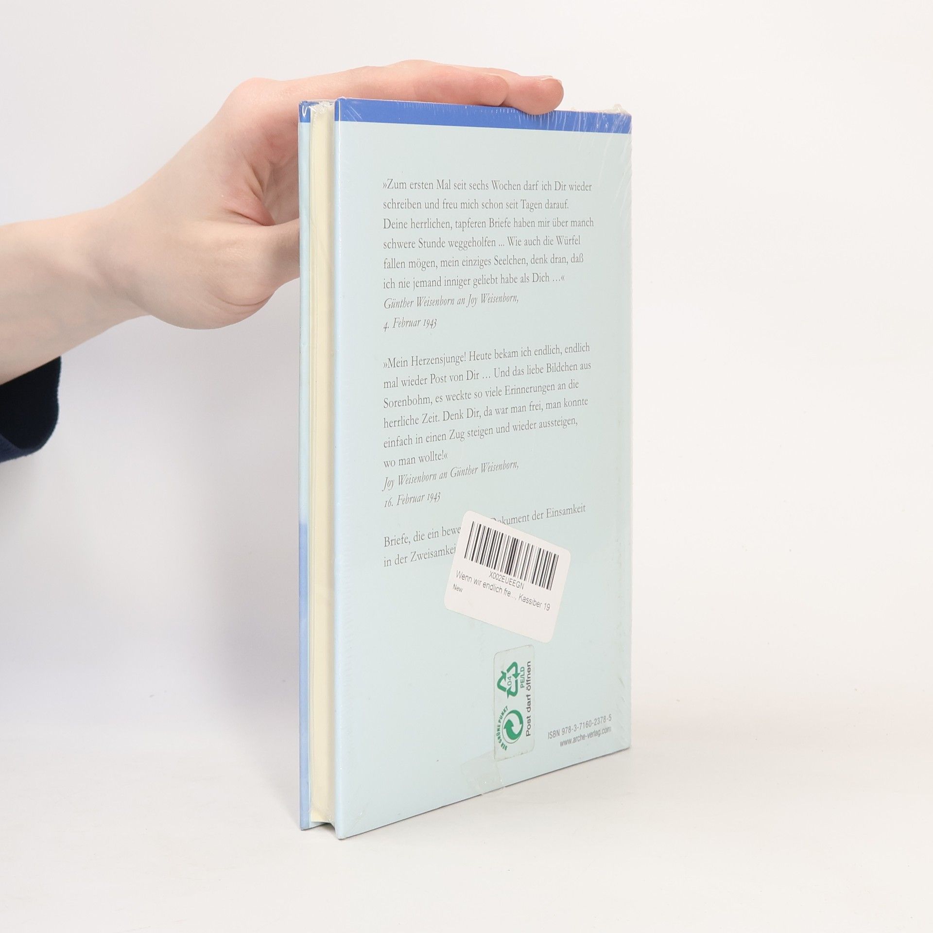 Monatelang saßen der heute fast vergessene Schriftsteller Günther Weisenborn und seine Frau Joy in Einzelhaft: er in Spandau, sie im Gefängnis am Alexanderplatz in Berlin. Im September 1942 als Angehörige der Widerstandsgruppe Schulze-Boysen-Harnack verhaftet und allein mit der Angst und dem möglichen Tod vor Augen, wechselten sie Briefe von Zelle zu Zelle: Liebesbriefe, sehnsuchtsvoll und zärtlich. Briefe voller Mut und Überlebenswillen. Briefe, in denen sie sich in die Erinnerung an das Glück der frühen Jahre flüchteten, und trotz wachsender Verzweiflung dichtete »Pitt« Lieder für sein »Joyken«, skizzierte er das Häuschen für die gemeinsame Zukunft, »wenn alles vorbei ist«, Wenn wir endlich frei sind. Die vorliegende Neuausgabe enthält zusätzlich zur Erstausgabe (u. d. T. Einmal laß mich traurig sein, Arche 1984) eine Aus-wahl der Briefe, die Günther Weisenborn 1943–1945 aus dem Zuchthaus Luckau an die in die Freiheit entlassene Joy schrieb, und eine Einführung des Sophie Scholl-Biographen Hermann Vinke: Ein bewegendes Dokument der Einsamkeit in der Zweisamkeit.
