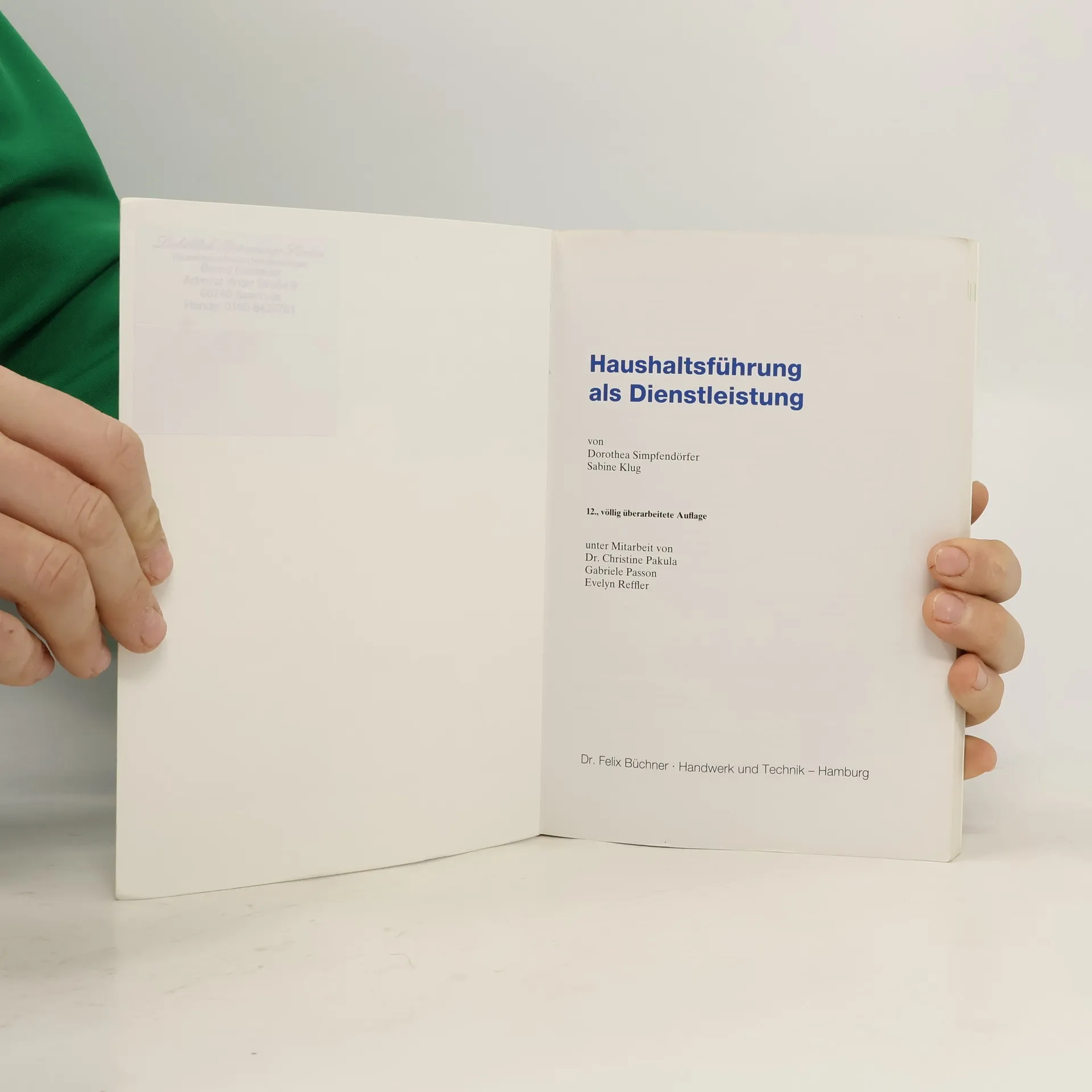 Haushaltsführung als Dienstleistung, Sabine Klug, Dorothea Simpfendörfer